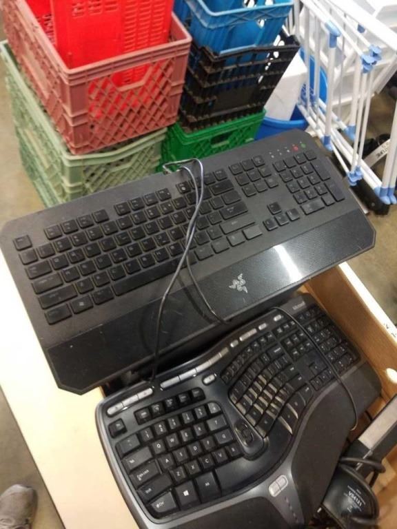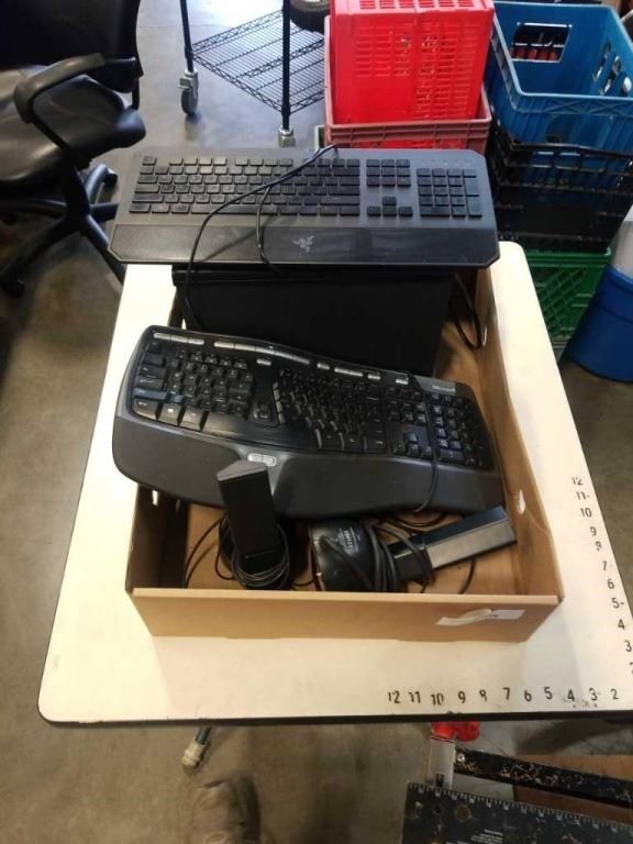 RAZER DEATHSTALKER GAMING KEYBOARD, MIRCROSOFT ERGONOMIC KEYBOARD AND ALTEC LANSING COMPUTER SPEAKER