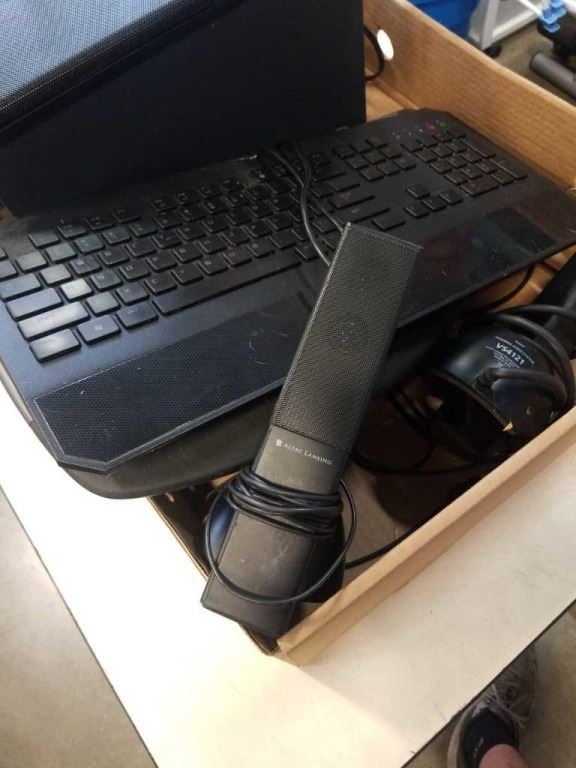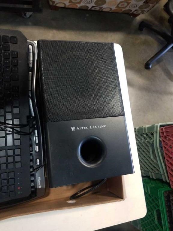 RAZER DEATHSTALKER GAMING KEYBOARD, MIRCROSOFT ERGONOMIC KEYBOARD AND ALTEC LANSING COMPUTER SPEAKERS WITH SUB