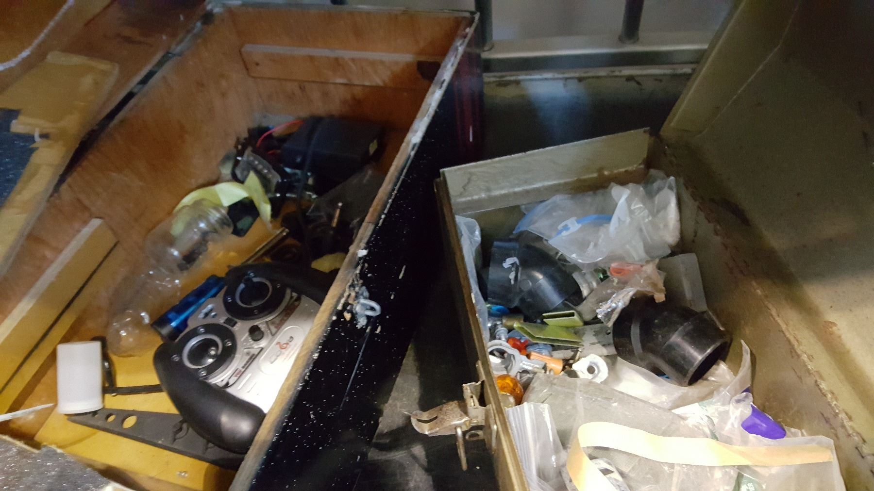 RC PARTS WOOD TOOLBOX AND TOOLBOX WITH CONTENTS
