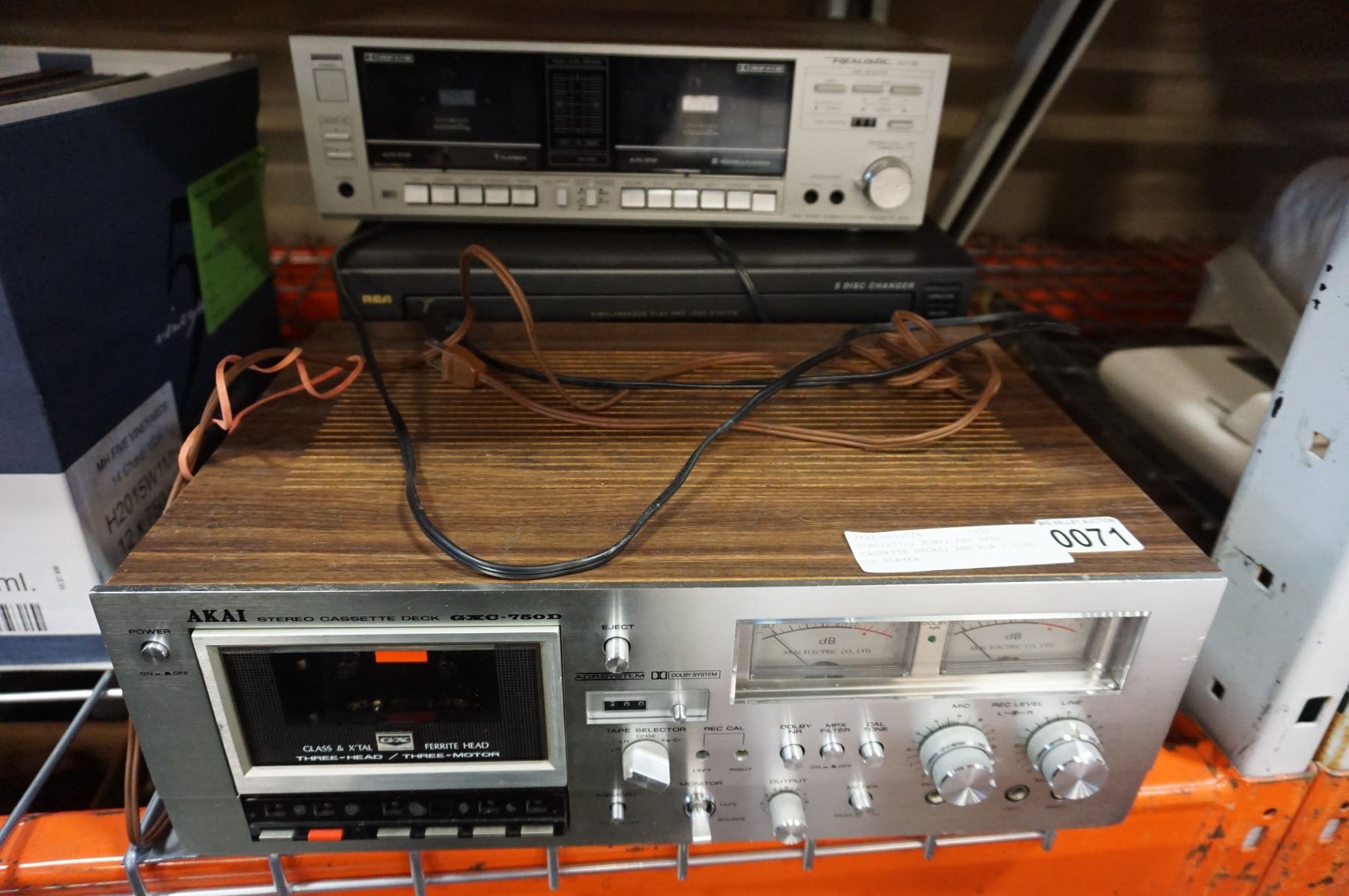 REALISTIC, SONY, AND AKAI CASSETTE DECKS, AND RCA 5 DISC CD PLAYER