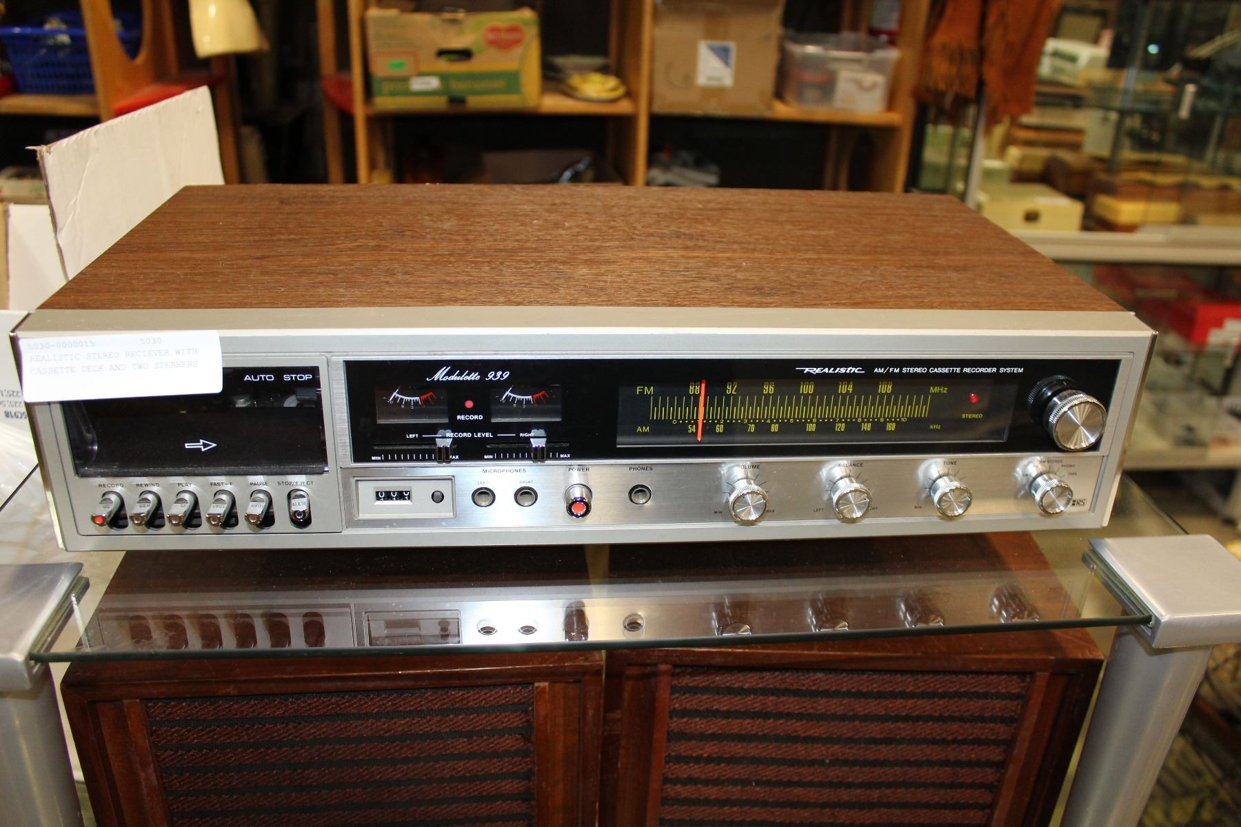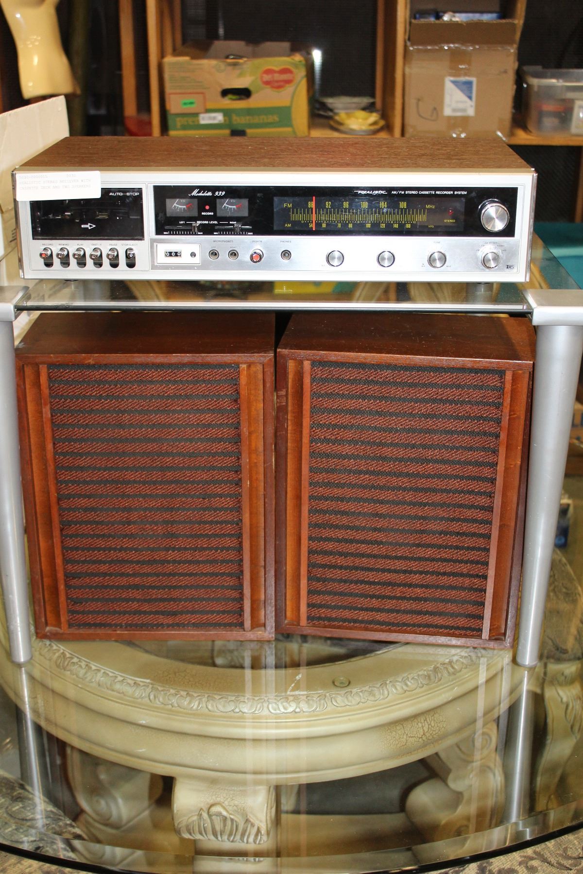 REALISTIC STEREO RECIEVER WITH CASSETTE DECK AND TWO SPEAKERS