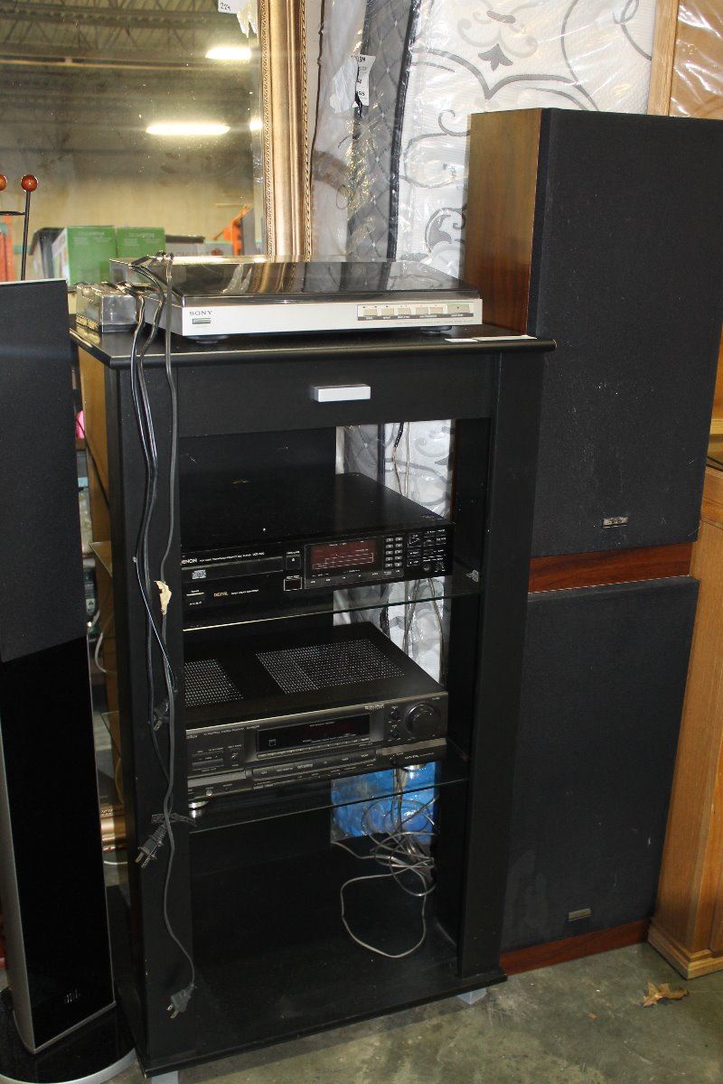 RECEIVER RECORD PLAYER CD PLAYER WITH SPEAKERS ON STAND