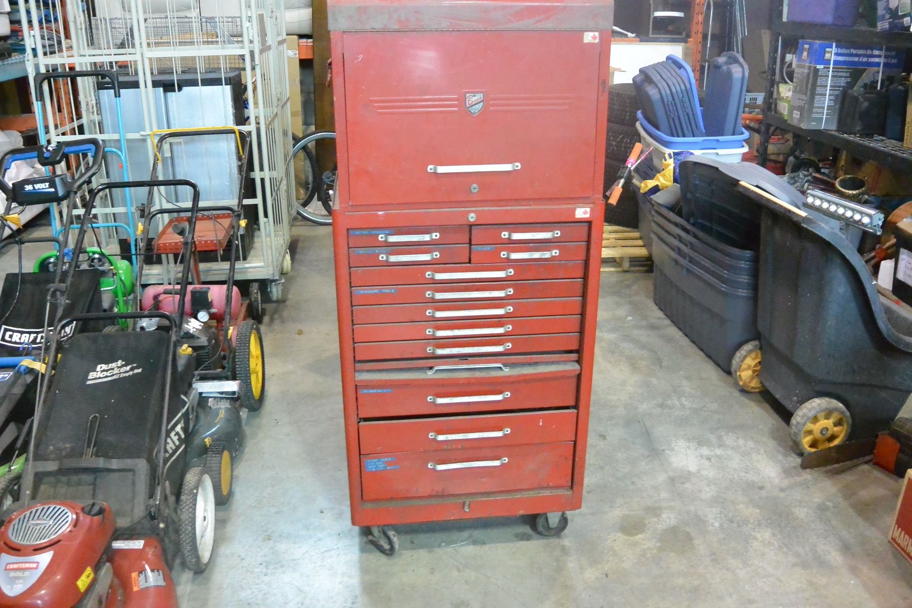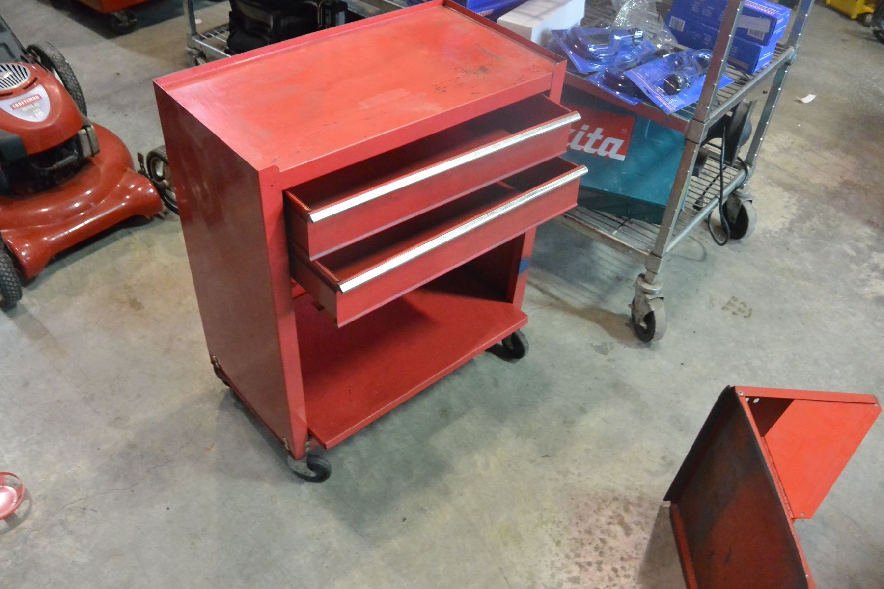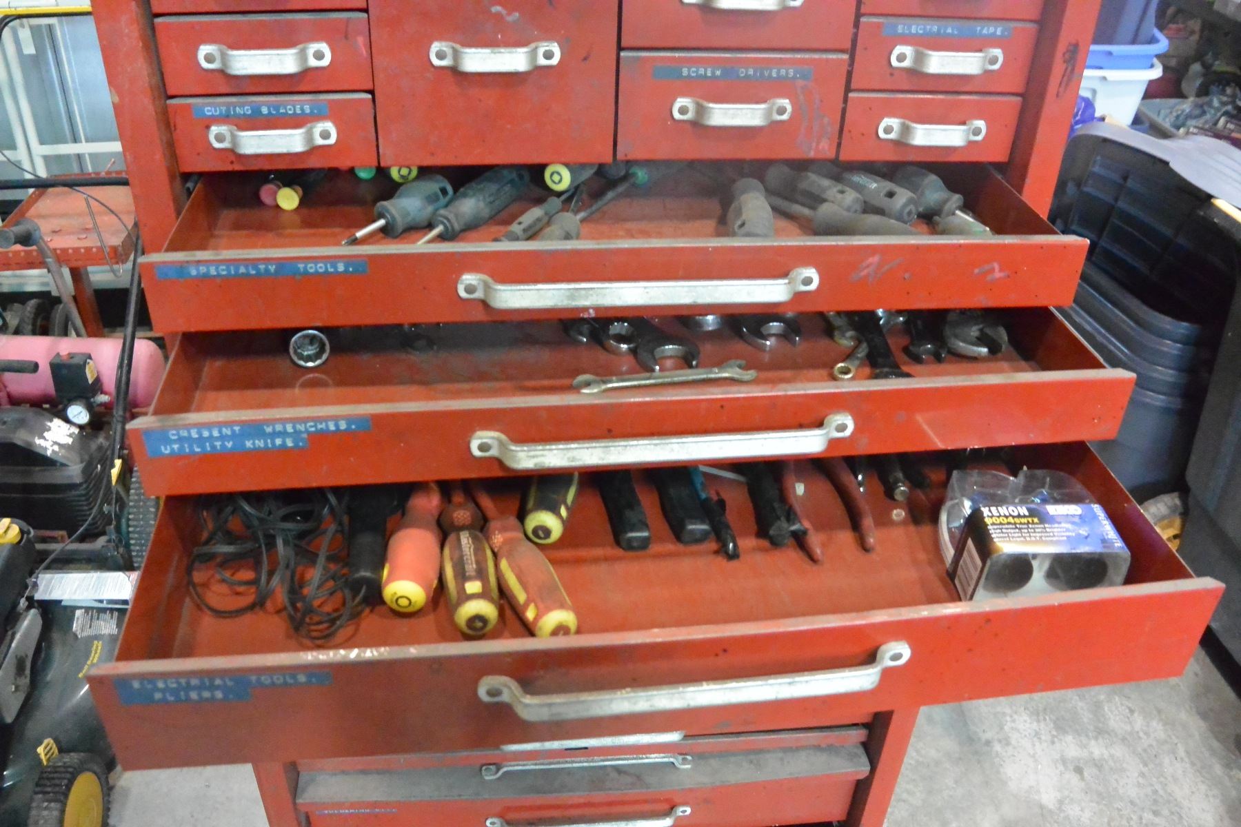 RED 2 PIECE BEACH TOOL CHEST W/ CONTENTS