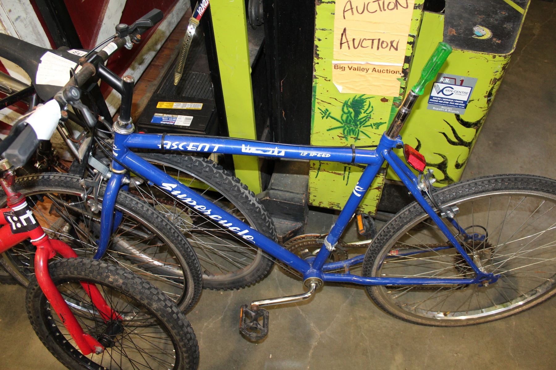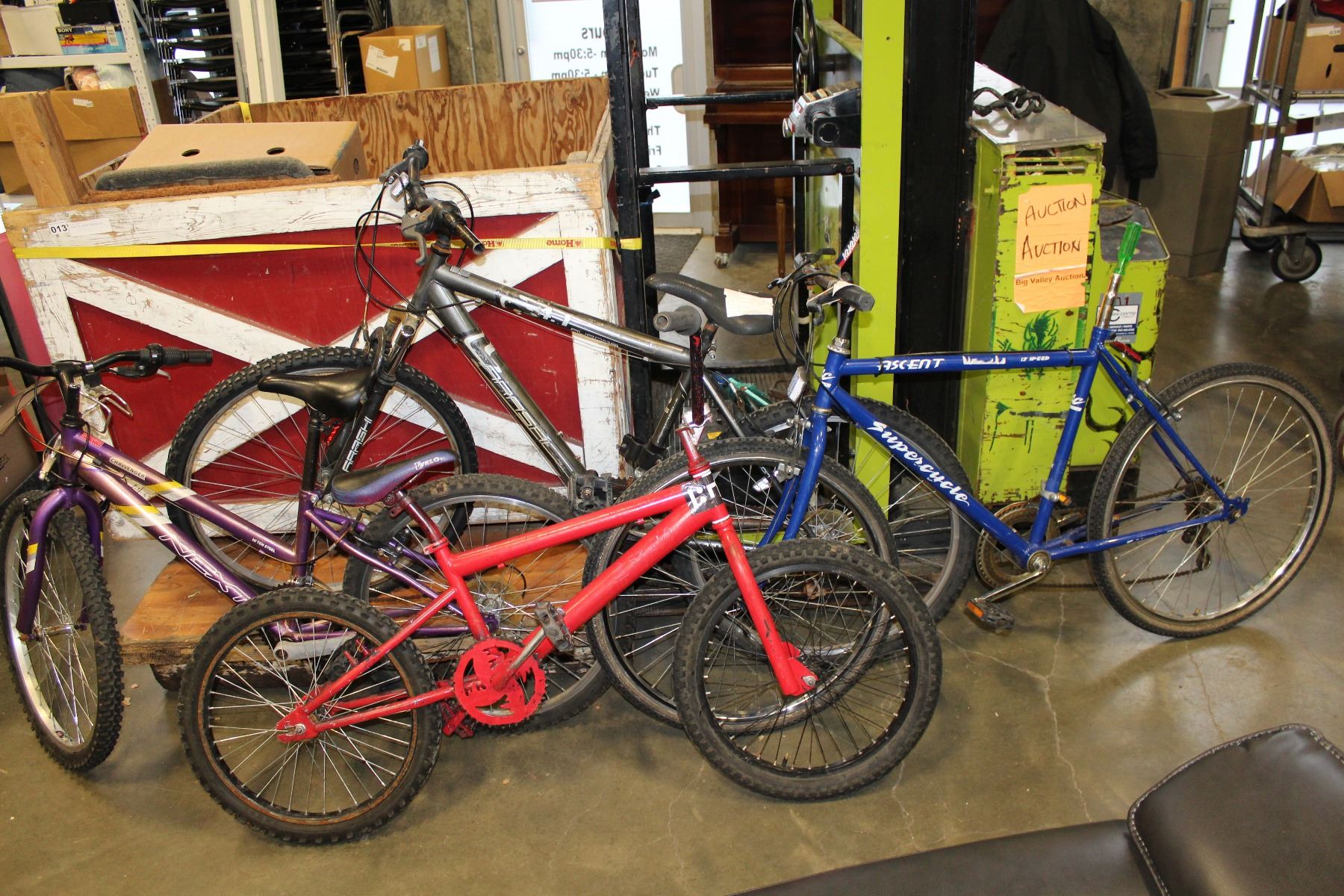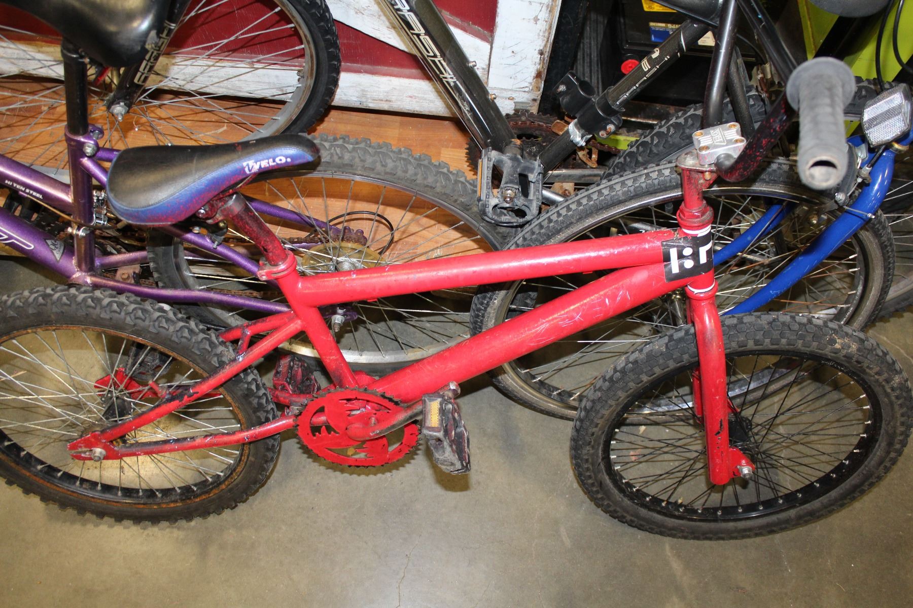RED BMX BLUE SUPERCYCLE AND GREY ARASHI BIKE AND PURPLE SUPERCYCLE BIKE