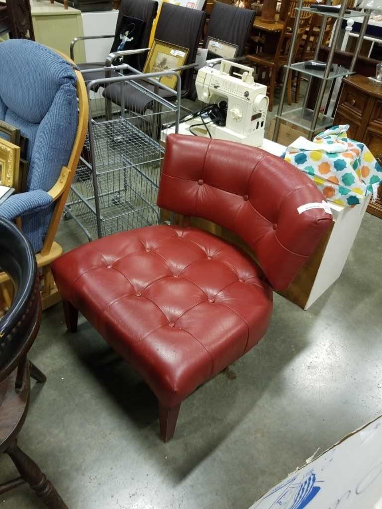 RED LEATHER TUFTED MOES ACCENT CHAIR