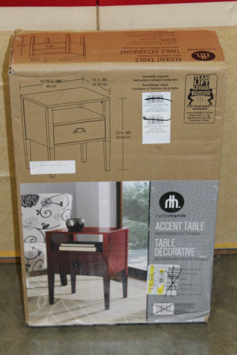 RED PAINTED ACCENT TABLE IN BOX