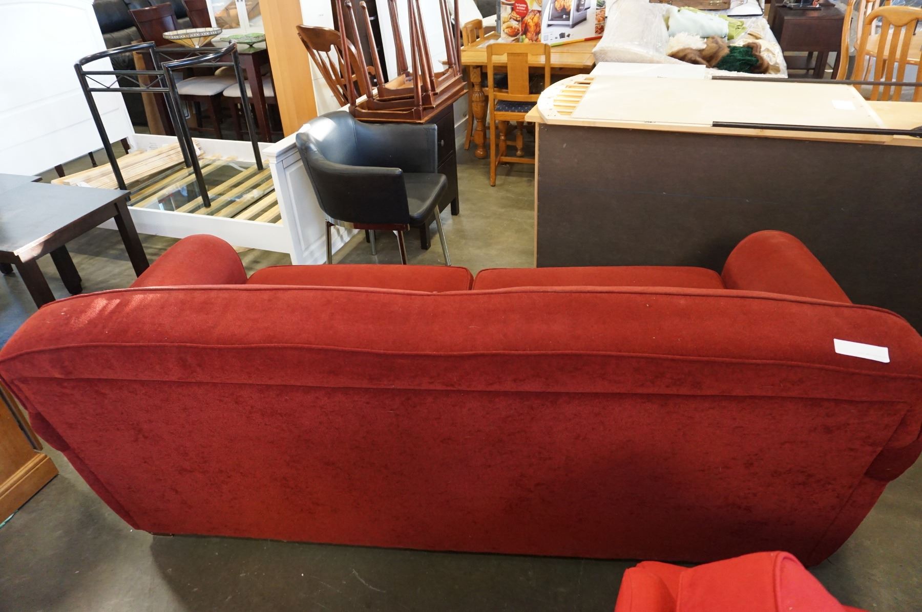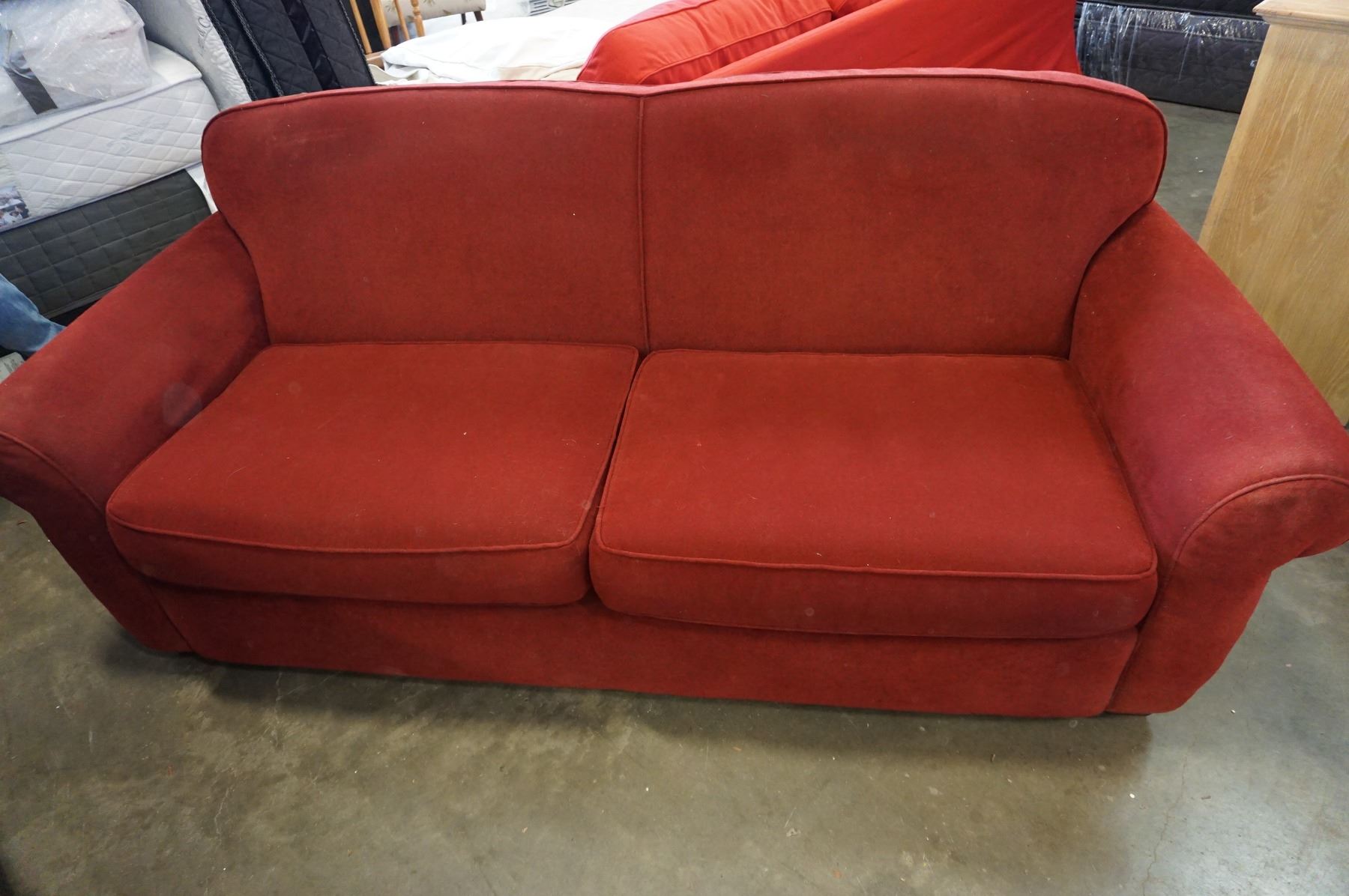 RED ROLLED ARM SOFA