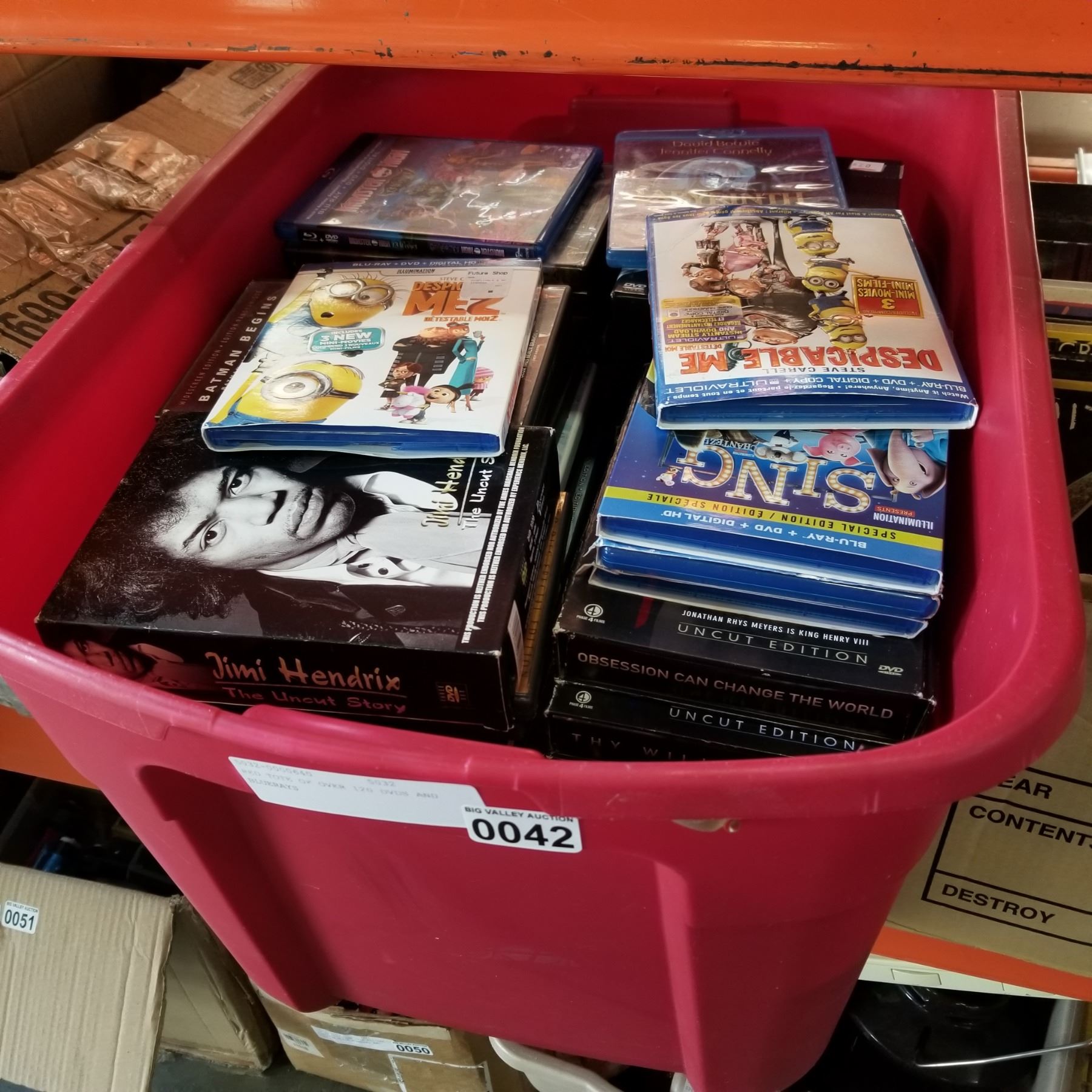 RED TOTE OF OVER 120 DVDS AND BLUERAYS