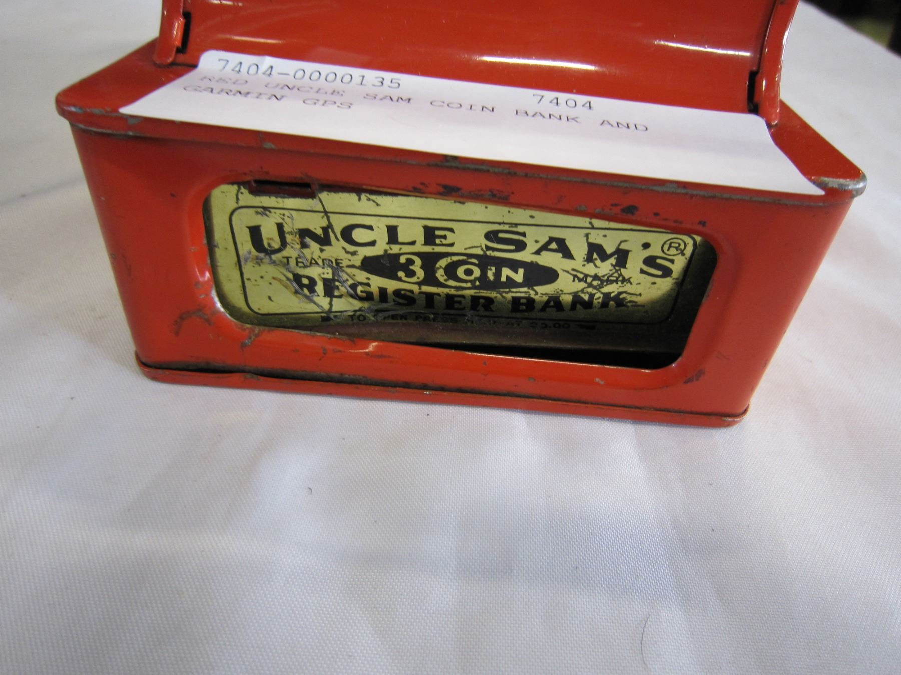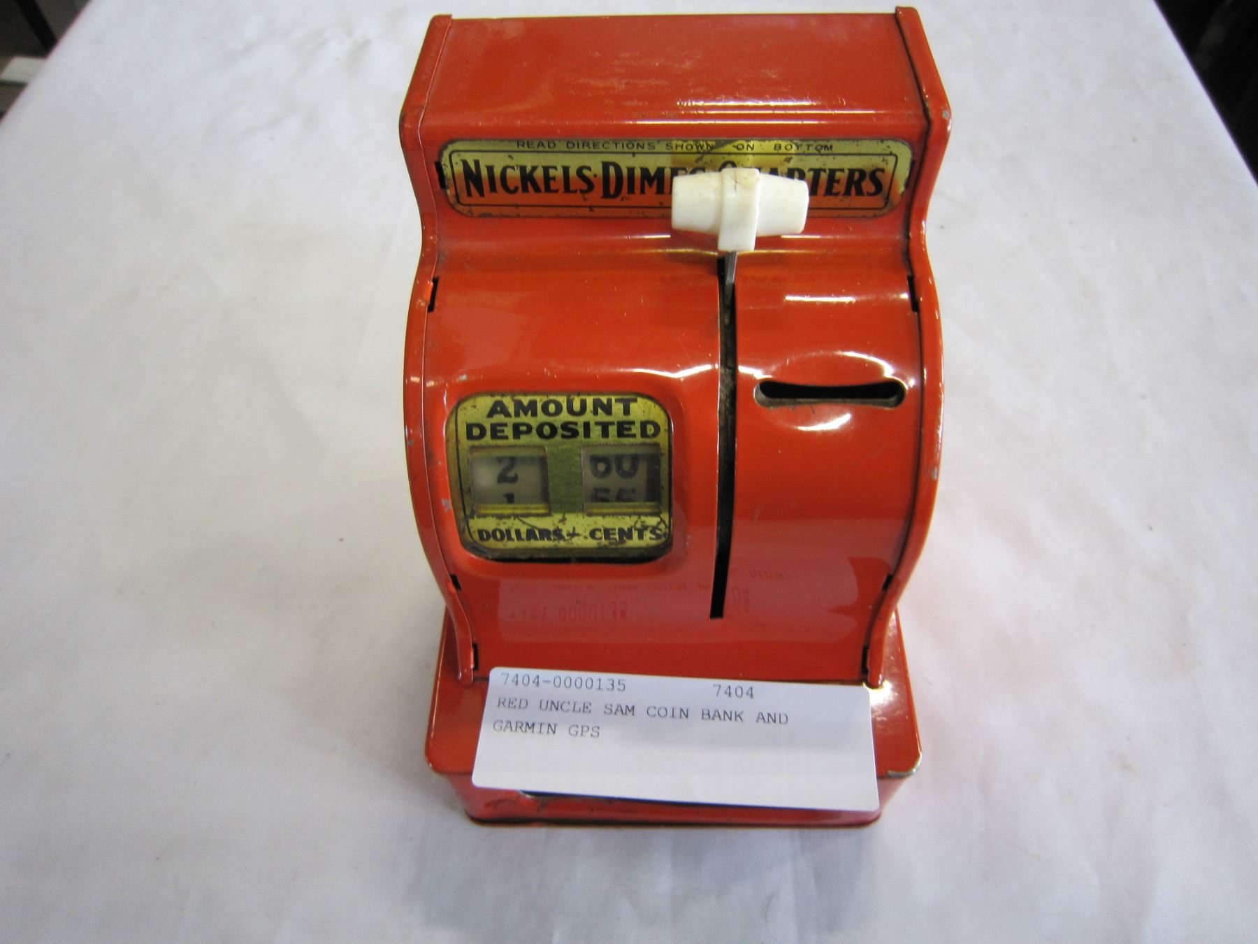 RED UNCLE SAM COIN BANK AND GARMIN GPS