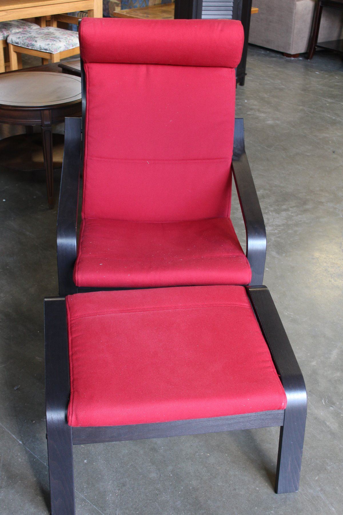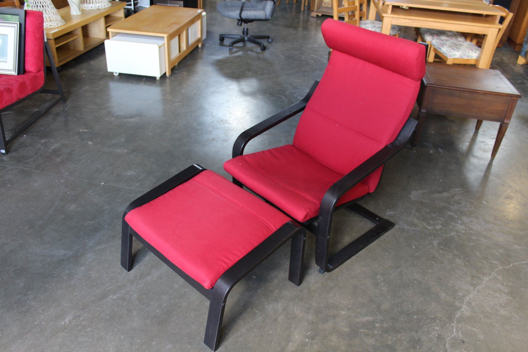 RED UPOLSTED IKEA BENTWOOD CHAIR AND OTTOMAN