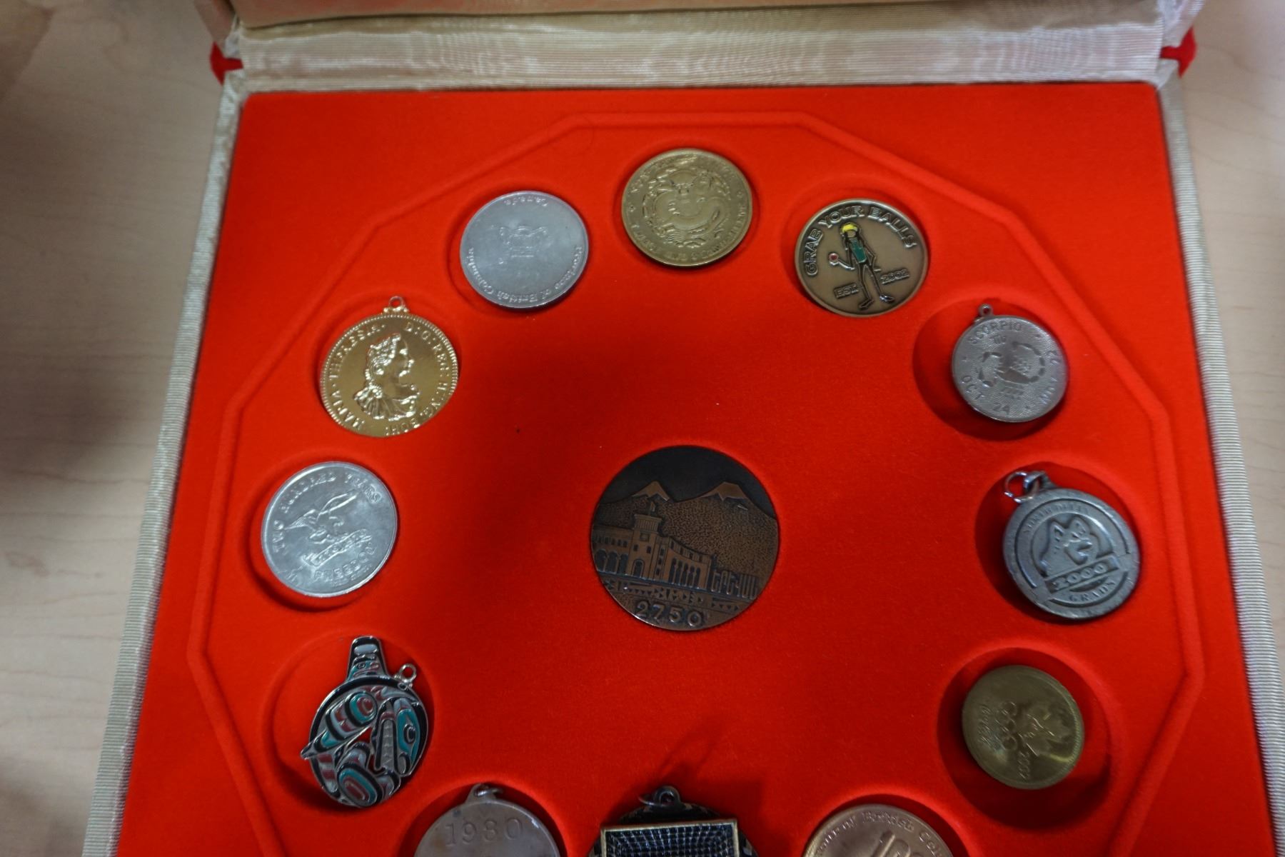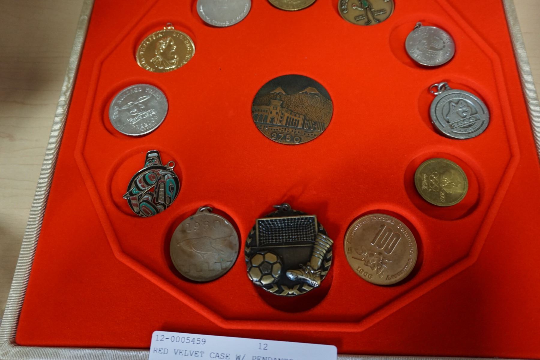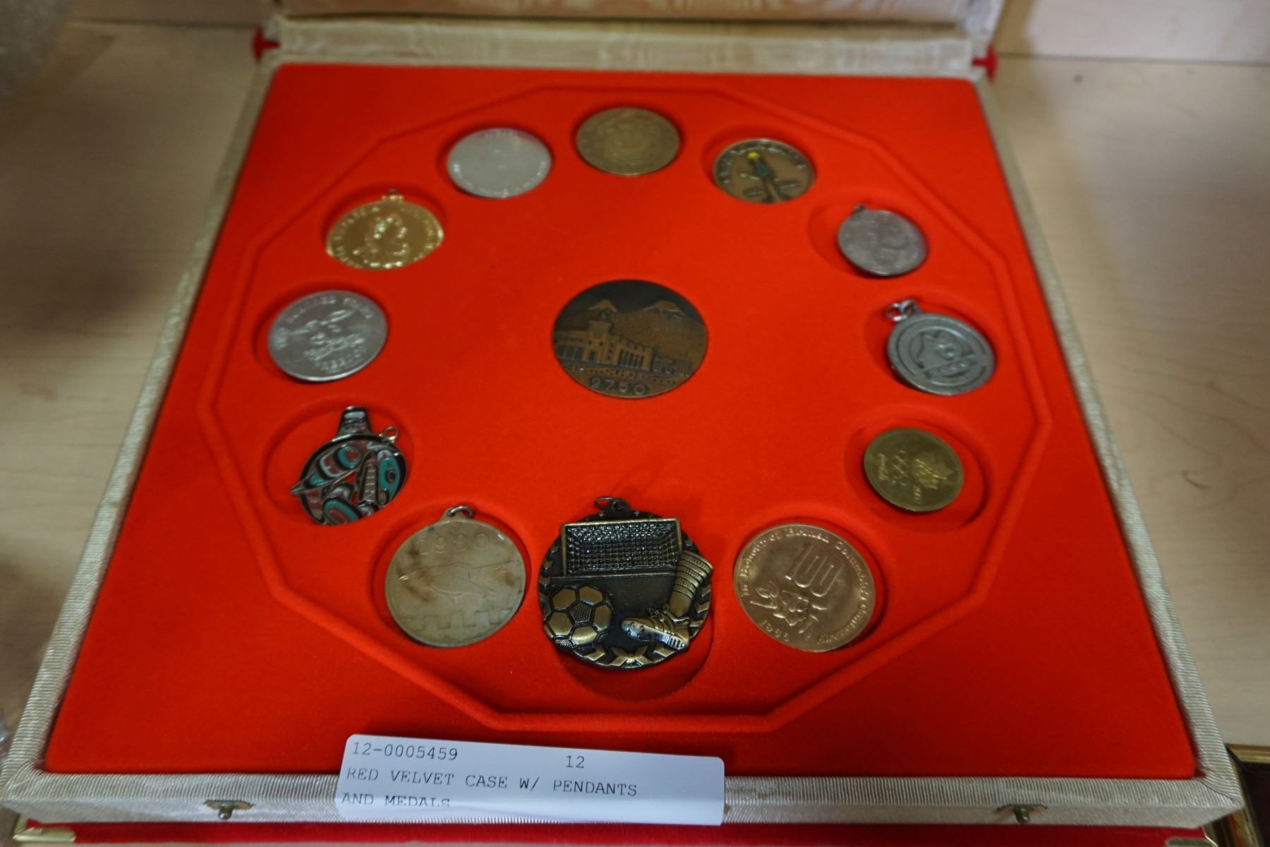 RED VELVET CASE W/ PENDANTS AND MEDALS