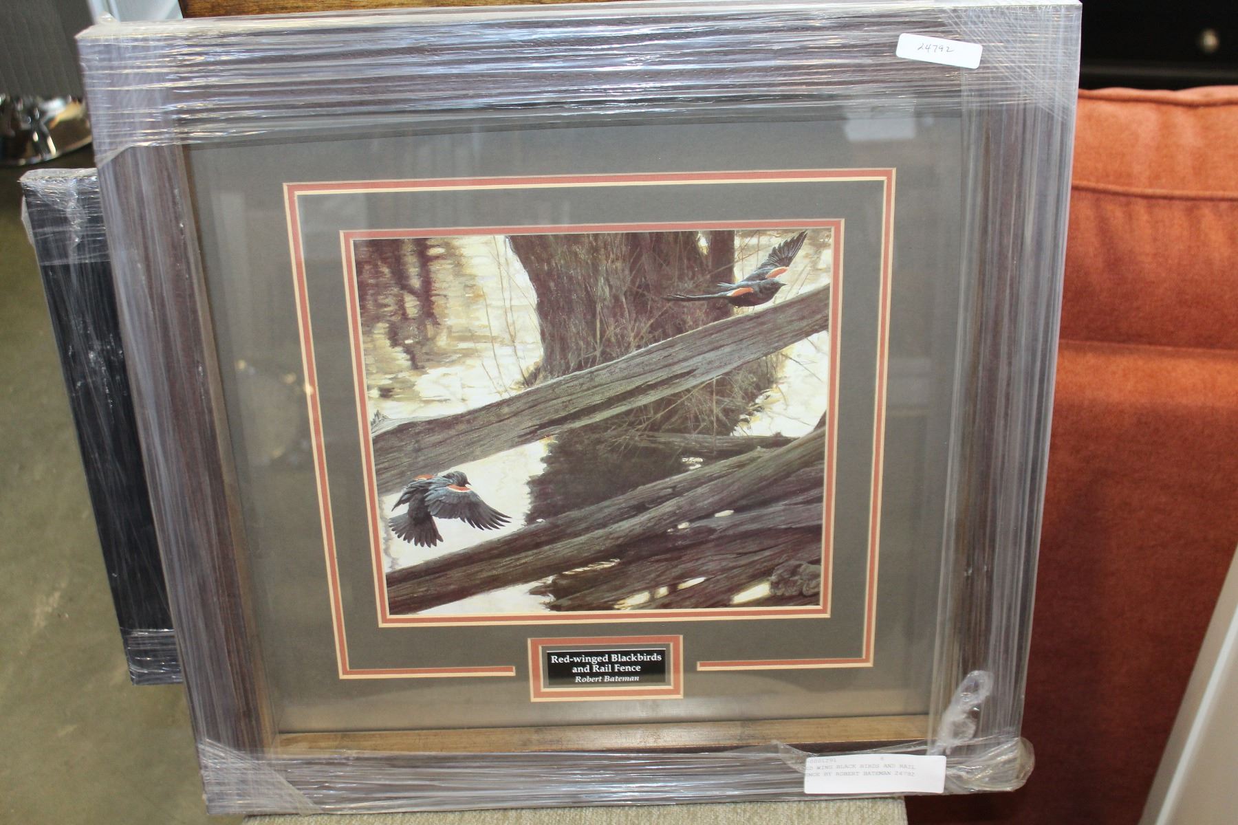 RED WING BLACK BIRDS AND RAIL FENCE BY ROBERT BATEMAN 24792
