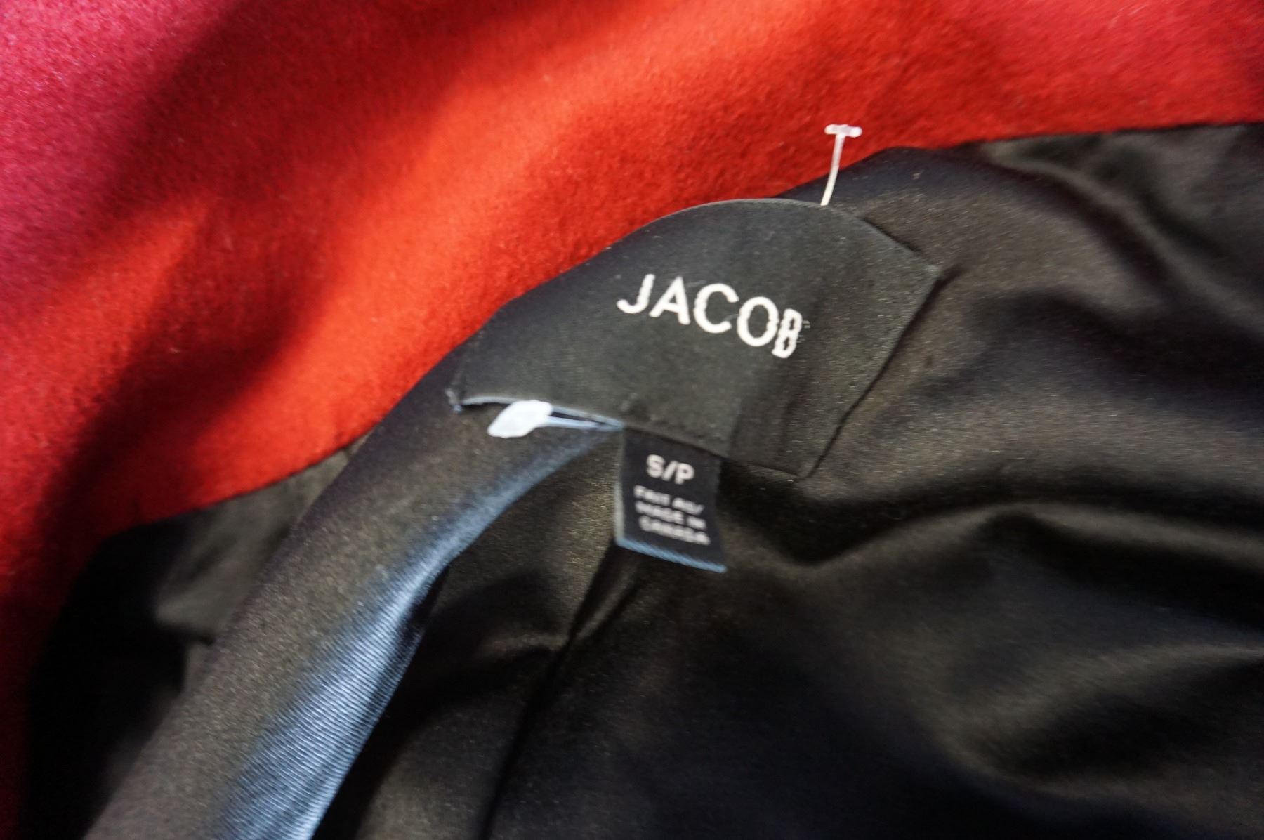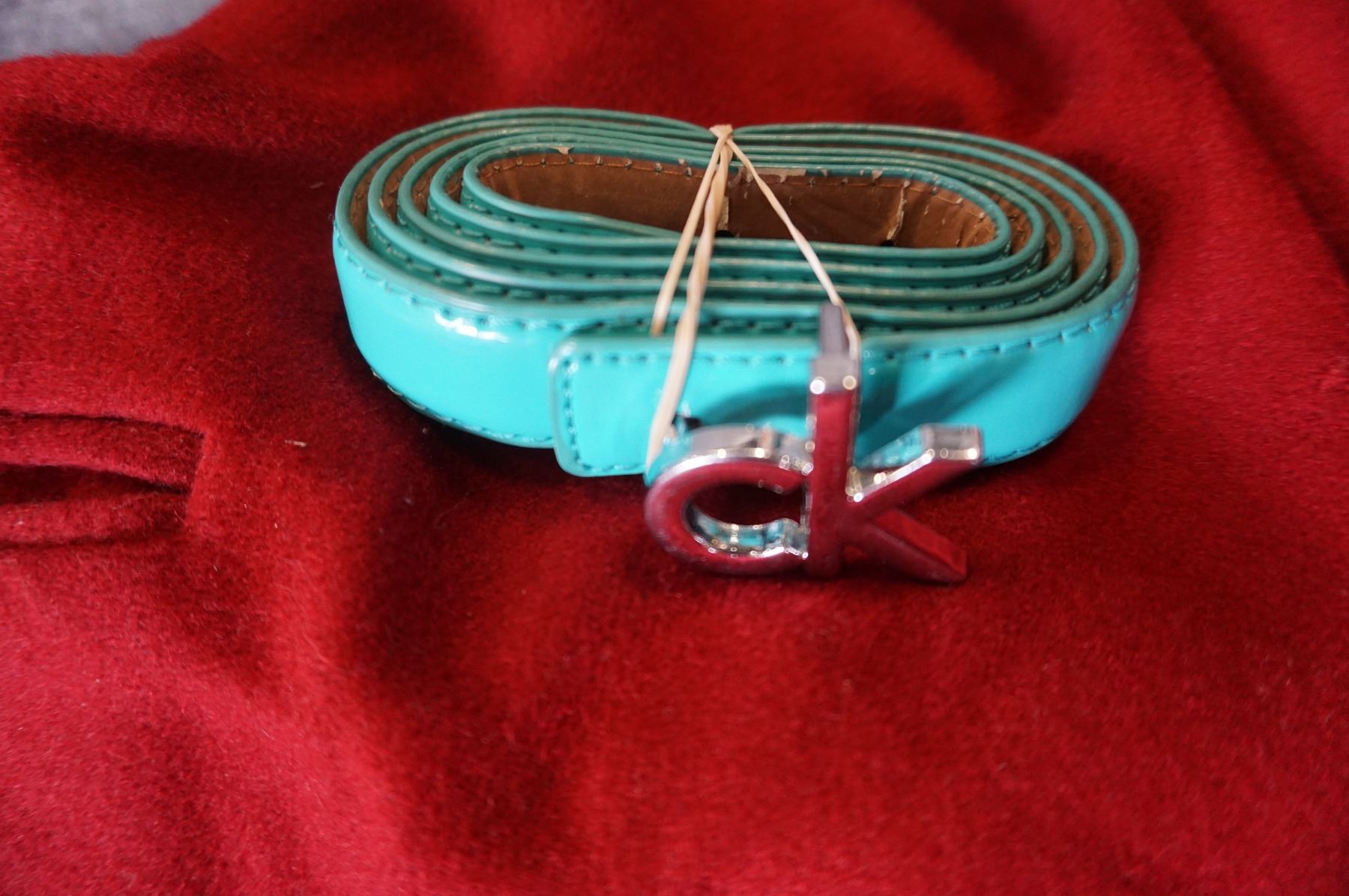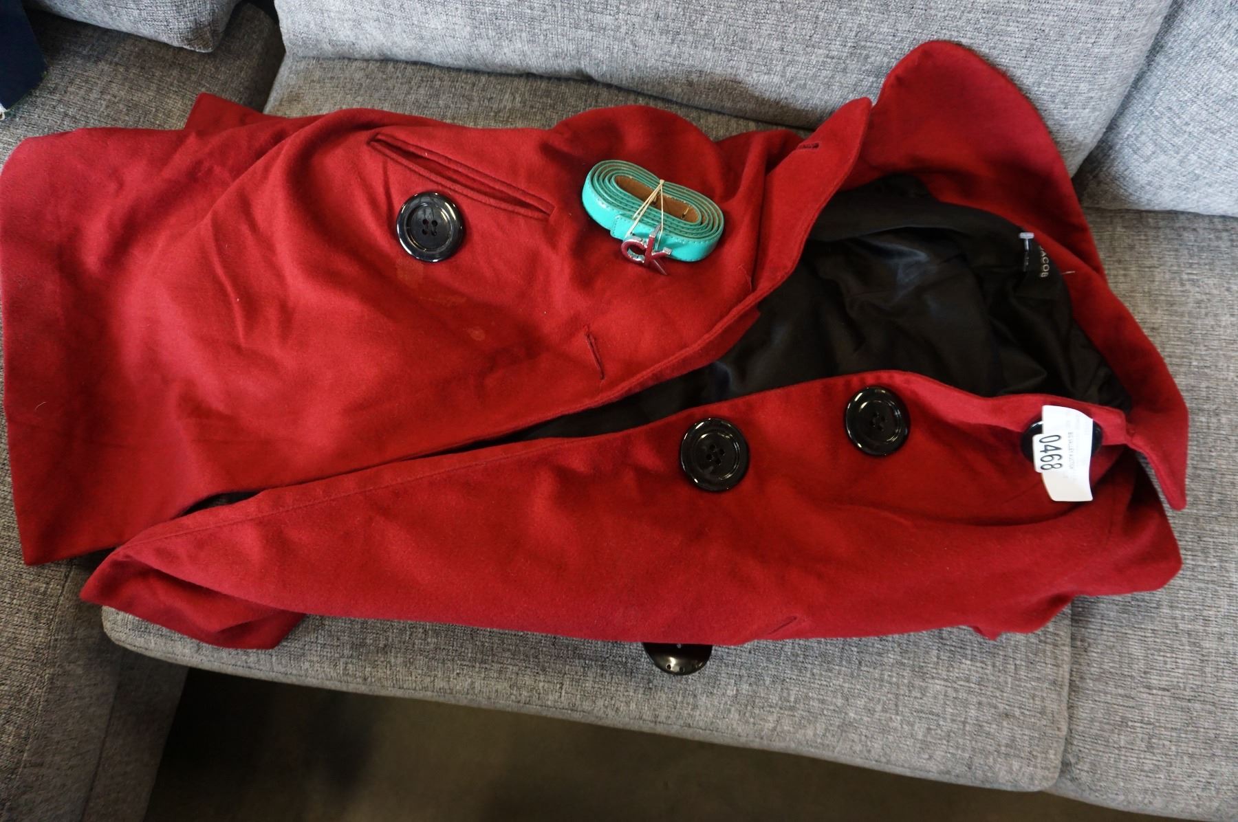 RED WOMENS DESIGNER COAT SIZE SMALL AND "CK" DESIGNER BELT