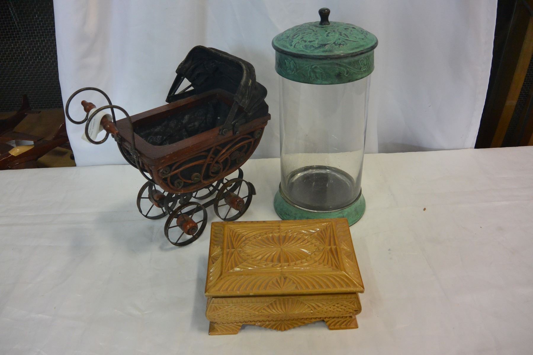 REPRODUCTION BUGGY CARVED BOX AND CANDY JAR