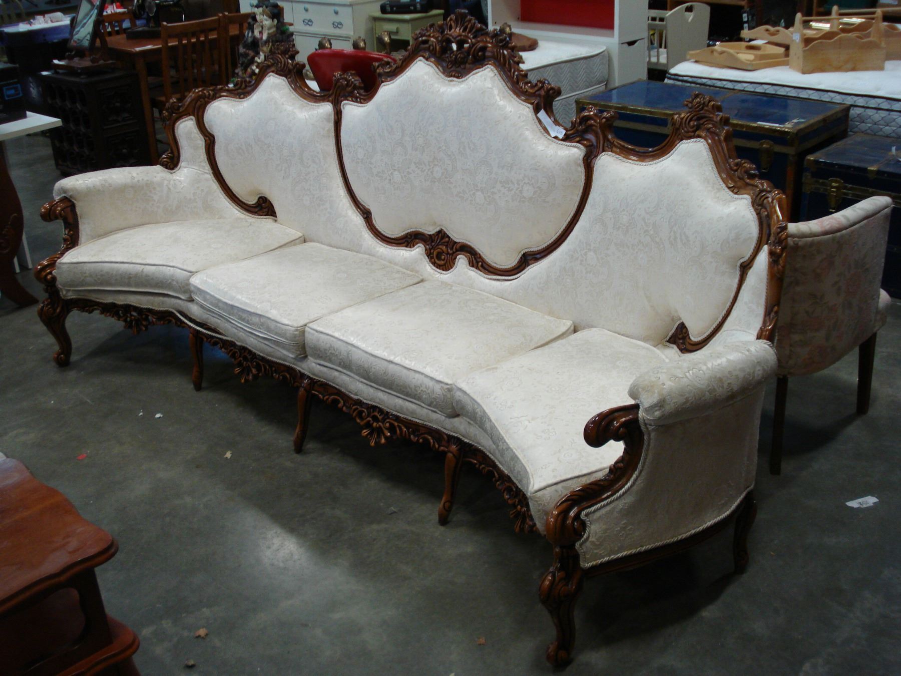 REPRODUCTION CARVED ANTIQUE SYTLE SOFA 8 AND 1/2 FEET LONG