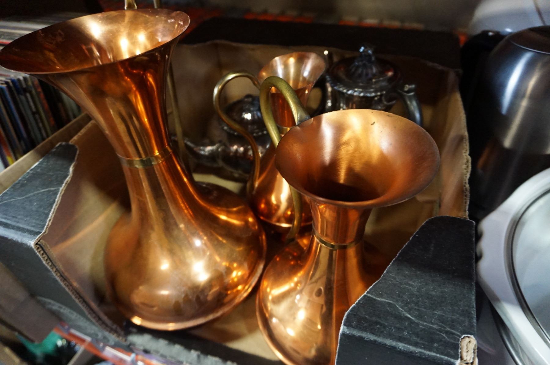 REPRODUCTION TEAPOT AND COFFEE POT W/ COPPER PITCHES