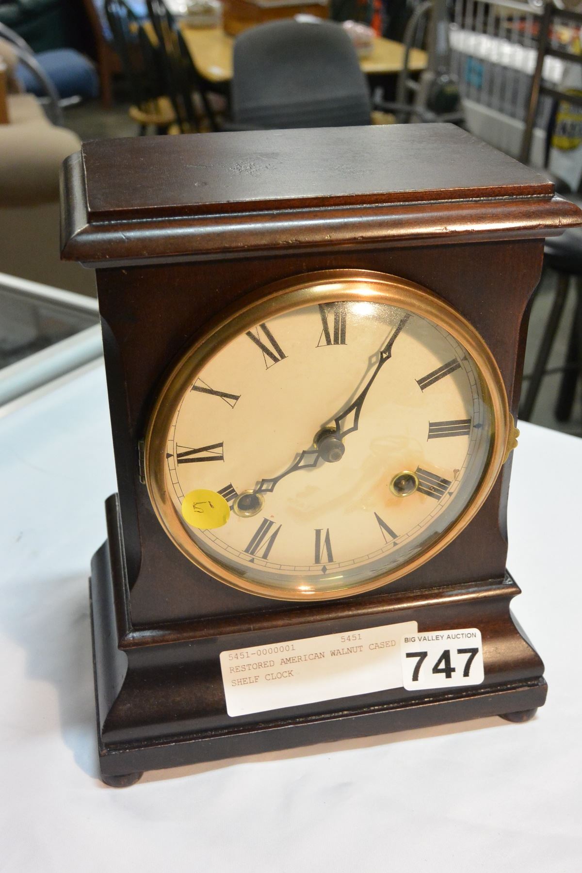 RESTORED AMERICAN WALNUT CASED SHELF CLOCK