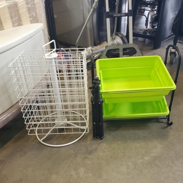 RETAIL SWIVEL DISPLAY RACK AND 2 TIER SHELF UNIT WITH TRIPOD
