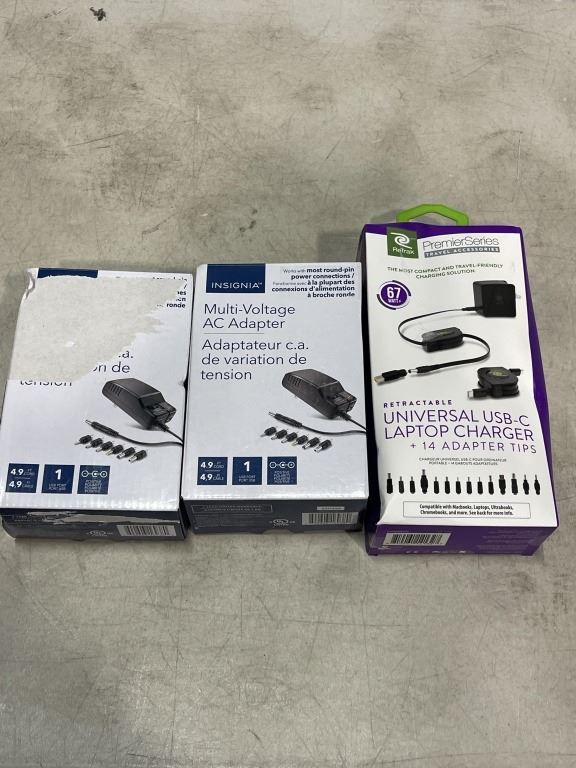 RETRAK UNIVERSAL USB-C LAPTOP CHARGER AND TWO MULTI-VOLTAGE AC ADAPTERS