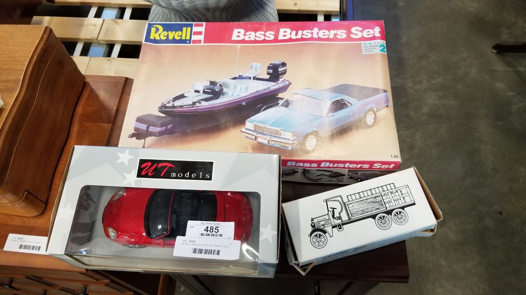 REVELL BASS BUSTERS SET MODEL CAR AND BOAT, UT MDOELS DIE CAST CAR 1:18 AND 1925 KENWORTH STAKE TRUC