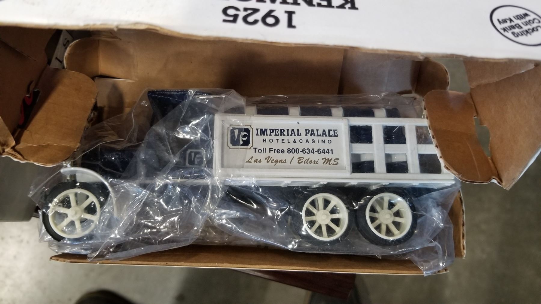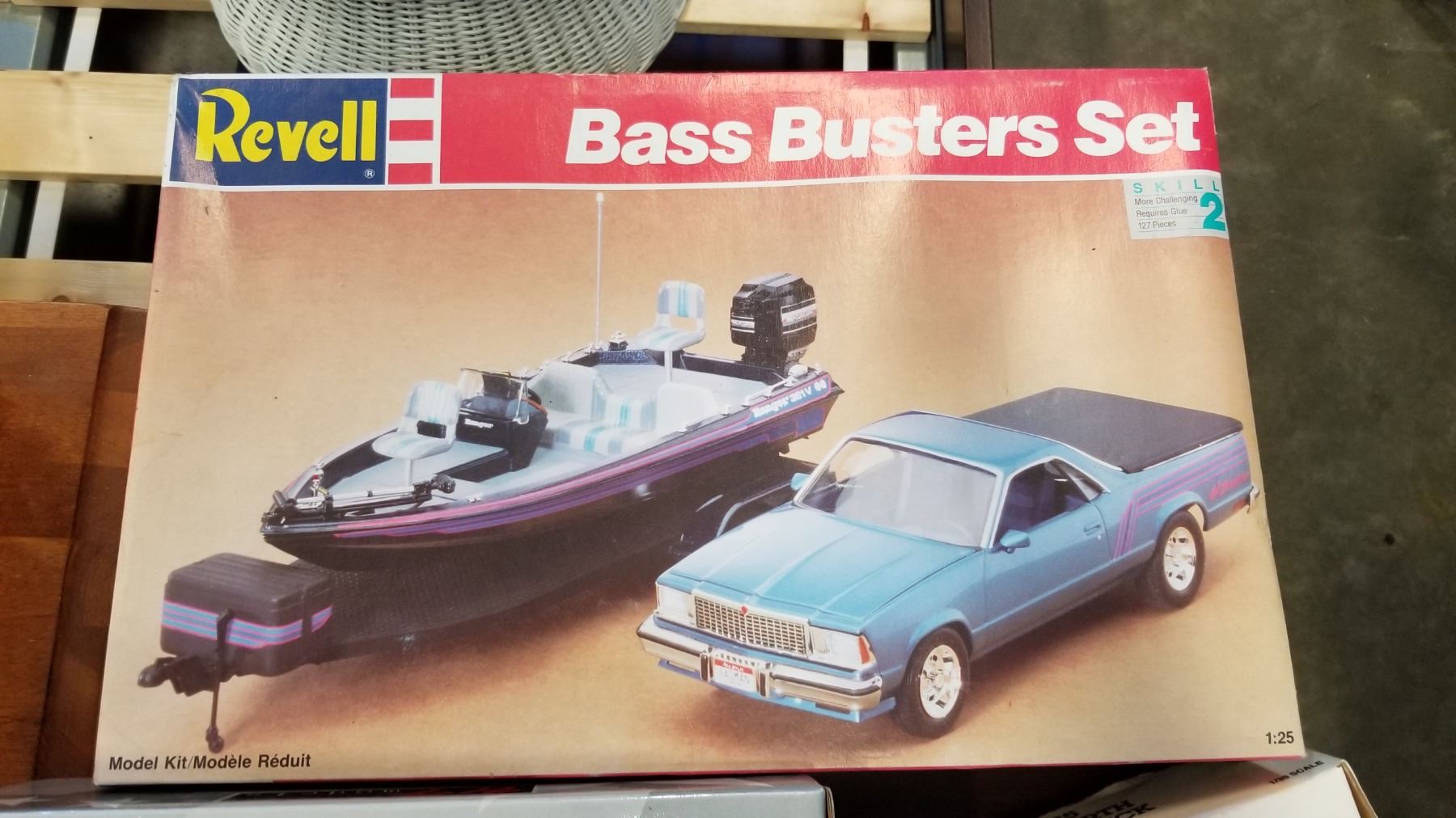 REVELL BASS BUSTERS SET MODEL CAR AND BOAT, UT MDOELS DIE CAST CAR 1:18 AND 1925 KENWORTH STAKE TRUCK BANK