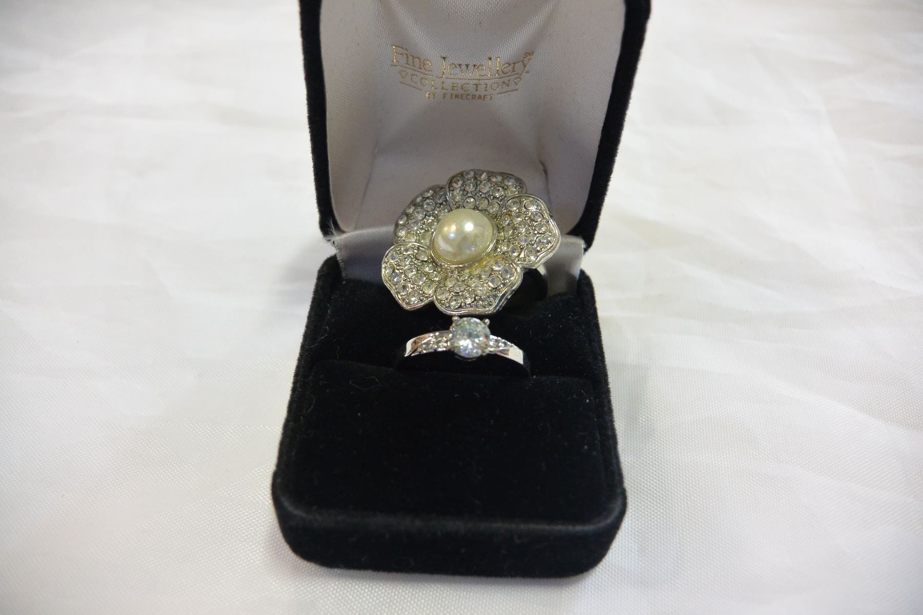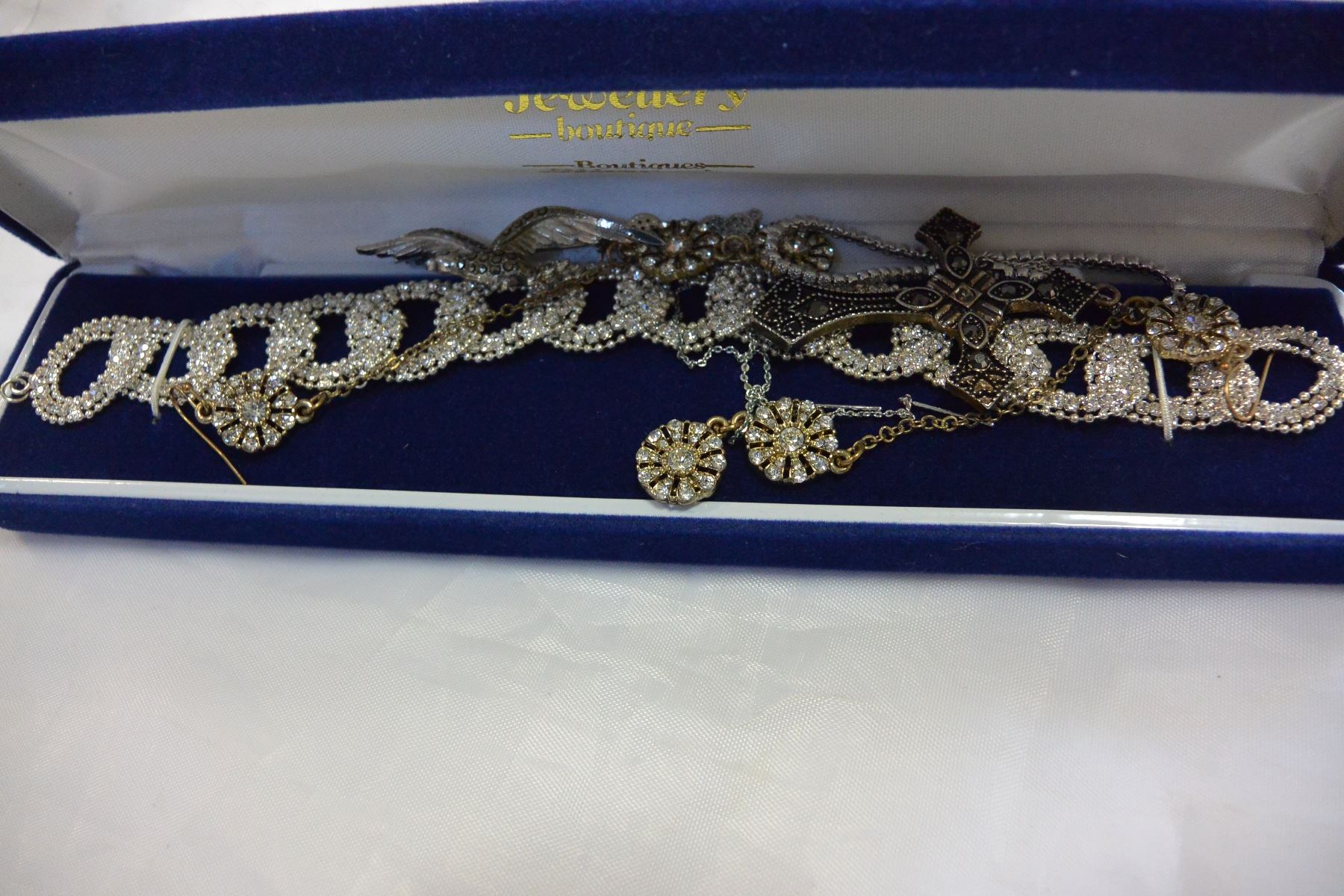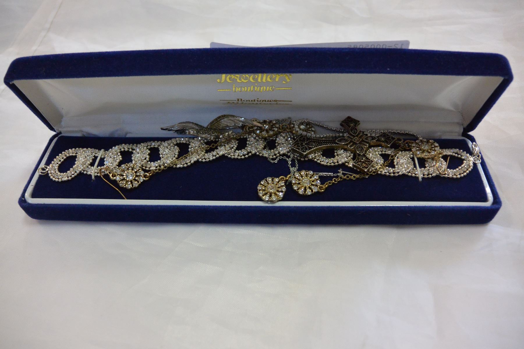 RHINESTONE BRACELET AND JEWELLRY AND TWO RINGS