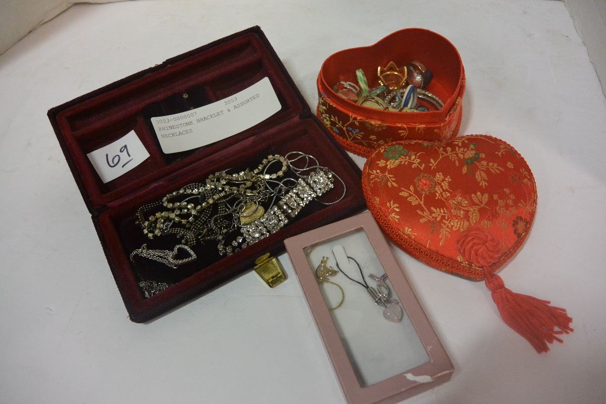 RHINESTONE BRACELET & ASSORTED NECKLACES