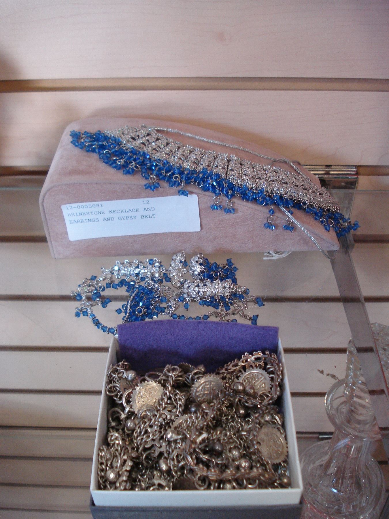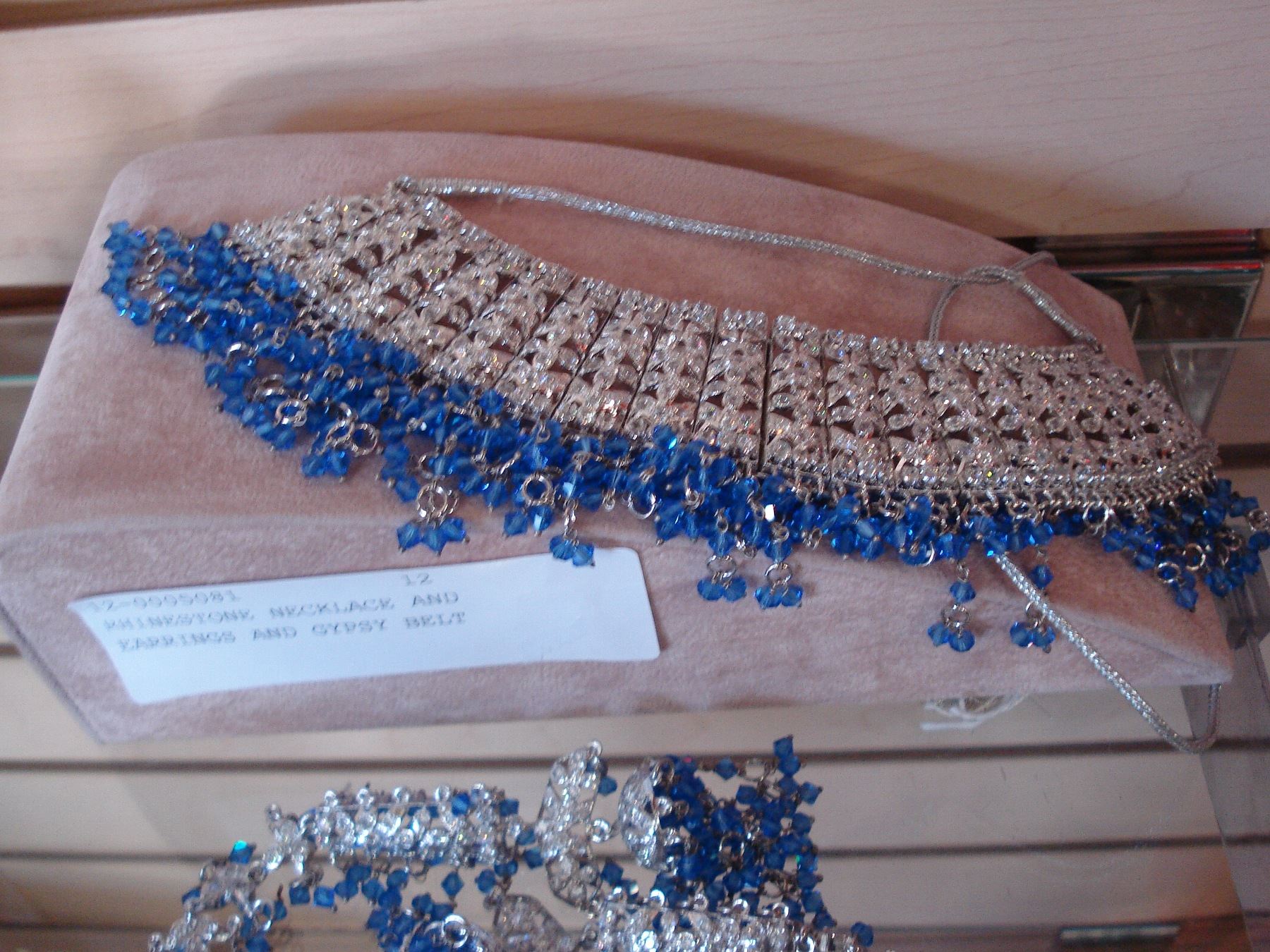 RHINESTONE NECKLACE AND EARRINGS AND GYPSY BELT