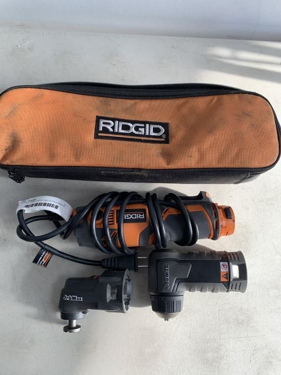 RIDGID JOBMAX WITH TWO ATTACHMENTS IN CARRY BAG, TESTED WORKING