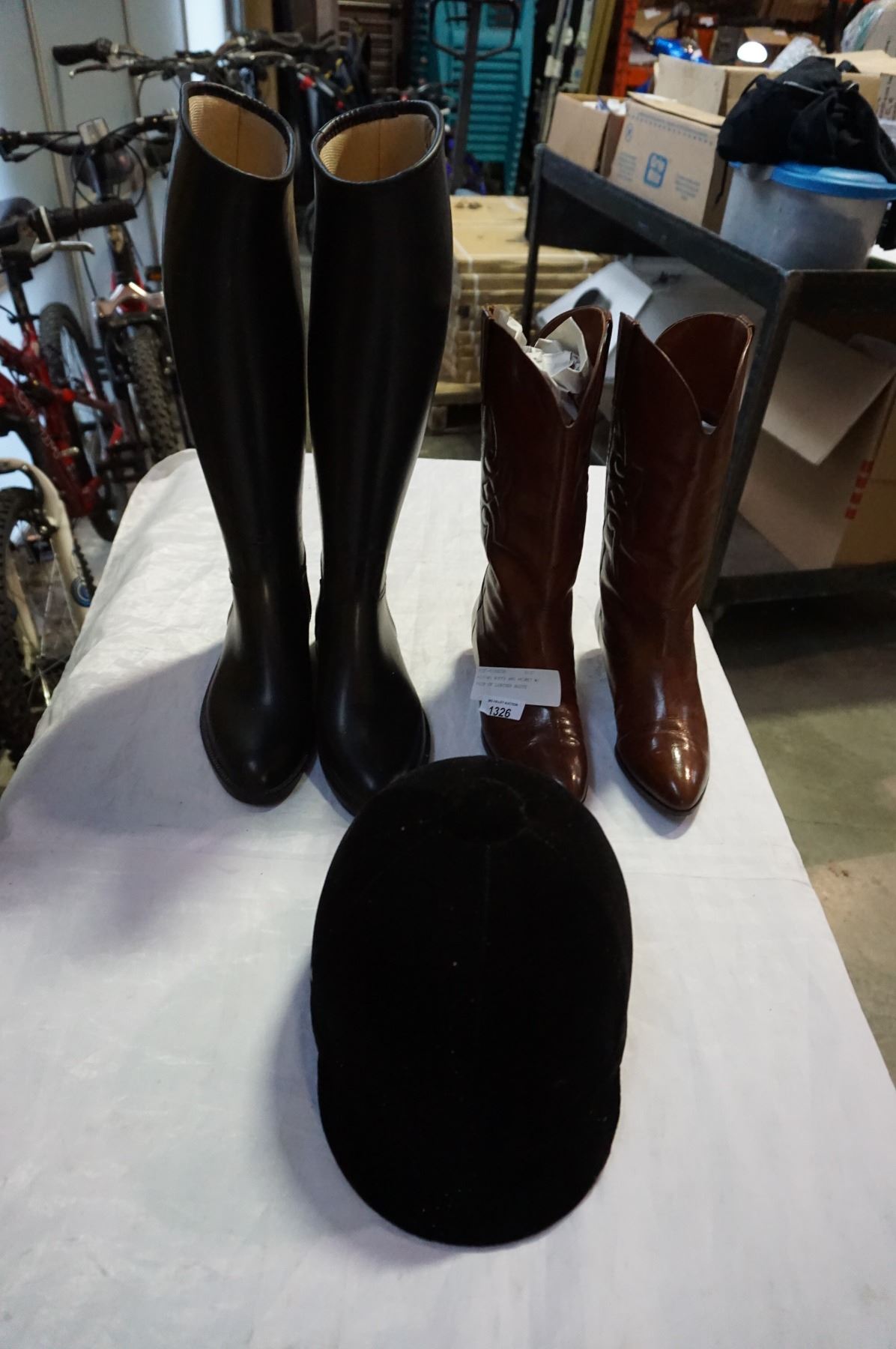 RIDING BOOTS AND HELMET W/ PAIR OF LEATHER BOOTS