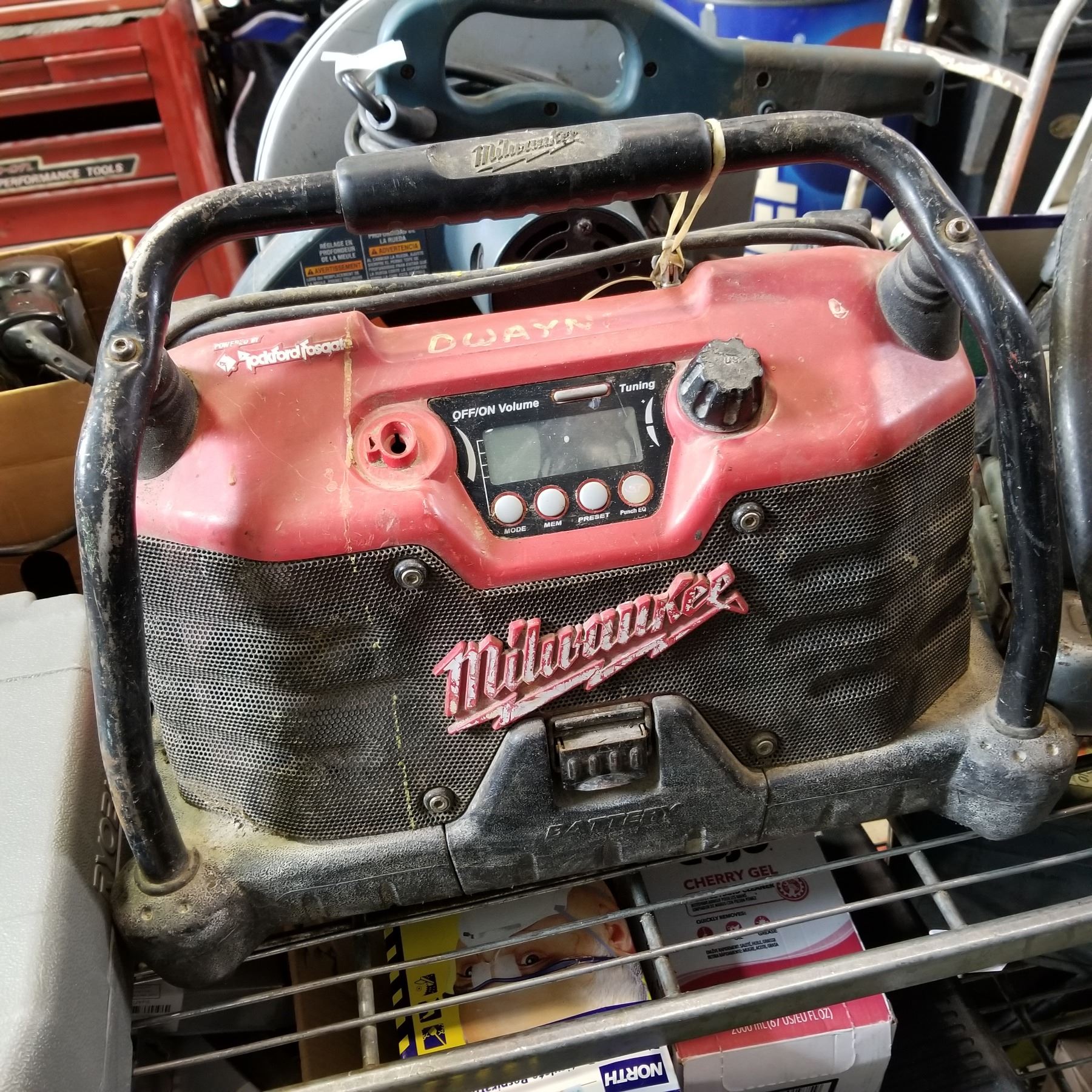 RIGID CHOP SAW, BARREL PUMP, AND MILWAUKEE JOBSITE RADIO