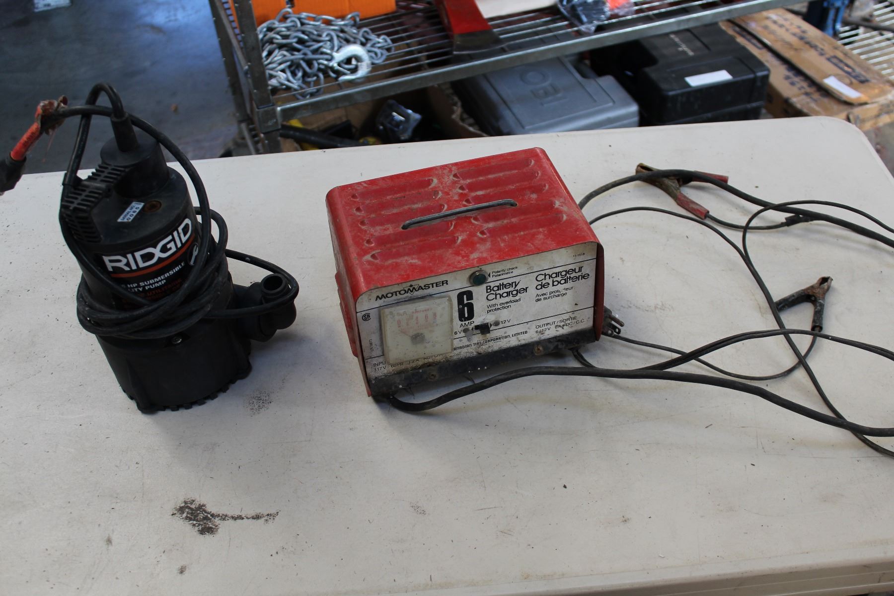RIGID ELECTRIC SUMP PUMP AND 12VOLT MOTOMASTER BATTERY CHARGER