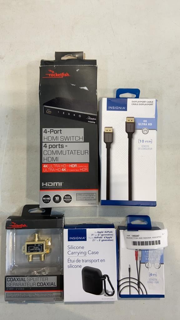 ROCKETFISH AND INSIGNIA ASSORTED CABLES, CHARGING CORDS, ETC