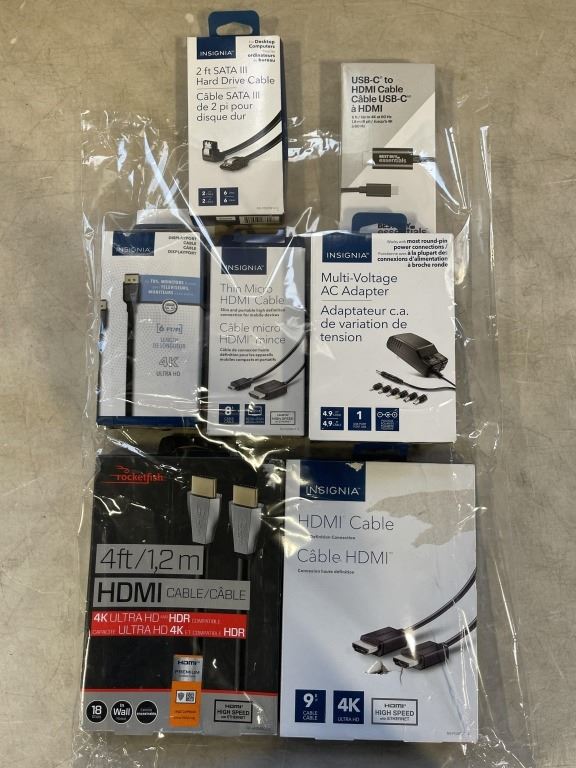 ROCKETFISH AND INSIGNIA ASSORTED CABLES, CHARGING CORDS, ETC