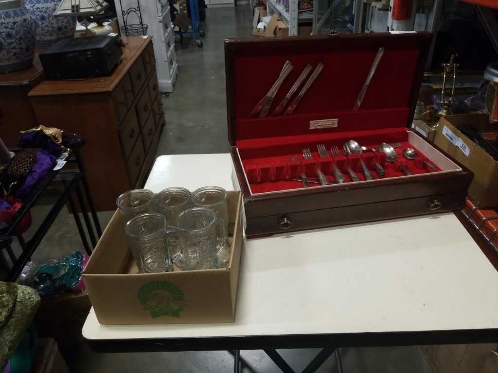 ROGERS ONEIDA A1 CUTLERY IN CANTEEN AND BOOT GLASSES