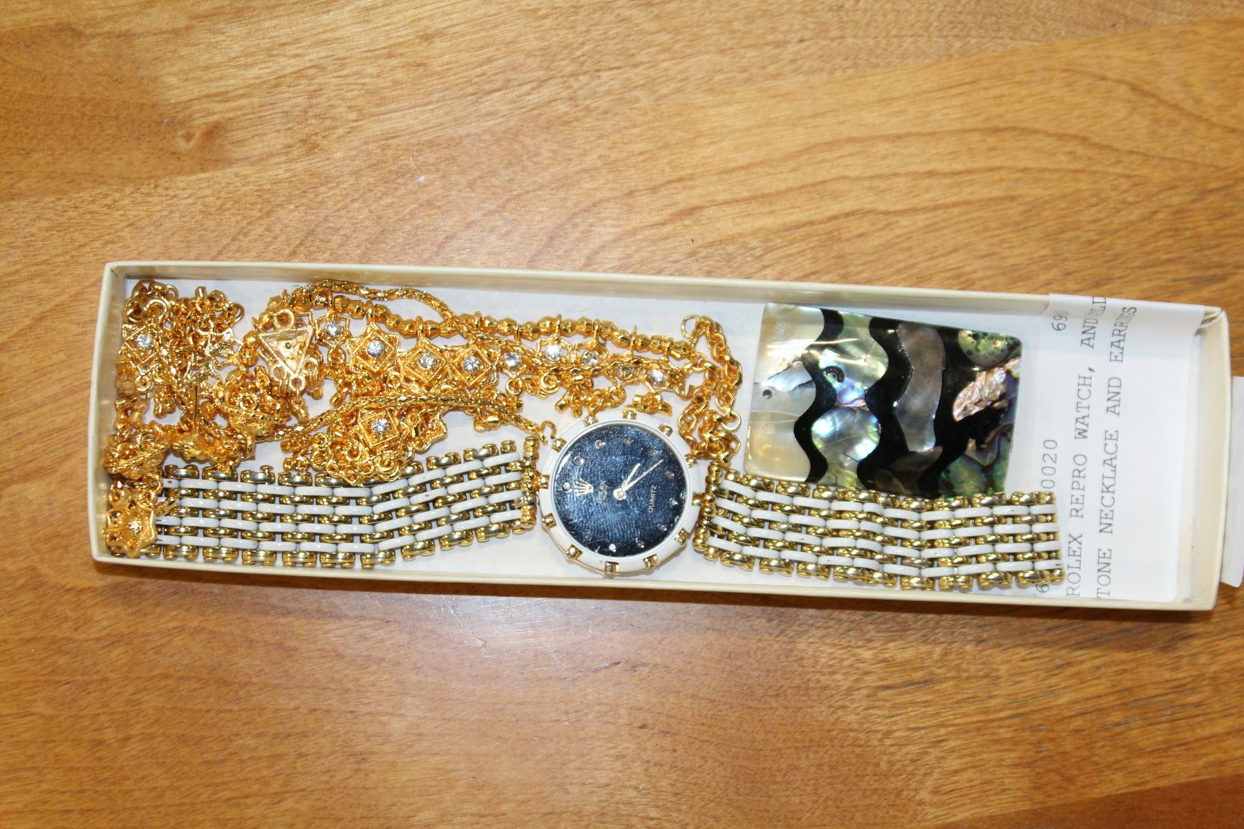ROLEX REPRO WATCH, AND GOLD TONE NECKLACE AND EARRINGS