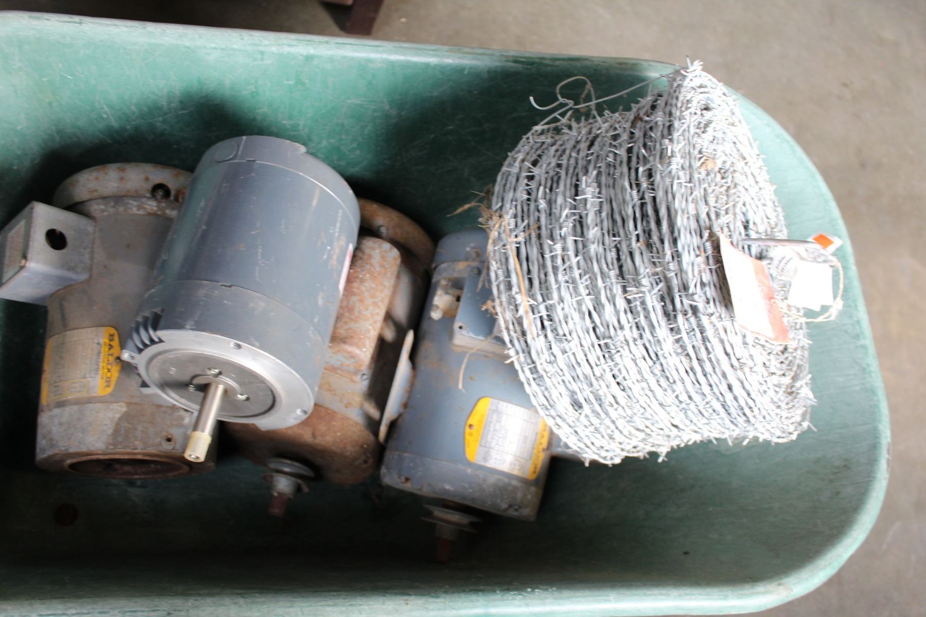 ROLL OF BARB WIRE AND 4 ELECTRIC MOTORS