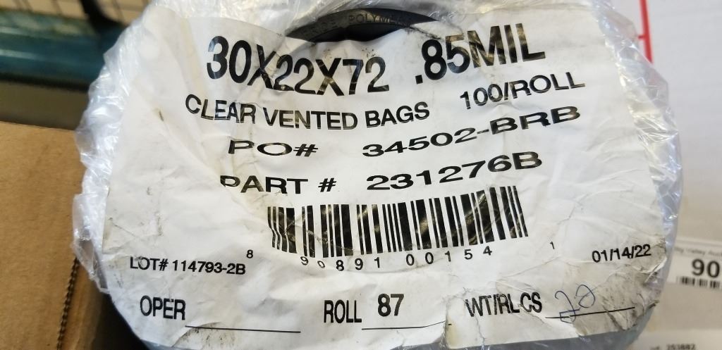 ROLL OF CLEAR VENTED BAGS, 100 PER ROLL 30X22X72 0.85MIL