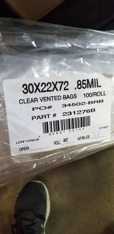 ROLL OF CLEAR VENTED BAGS - 100 PER ROLL, 30x22x72