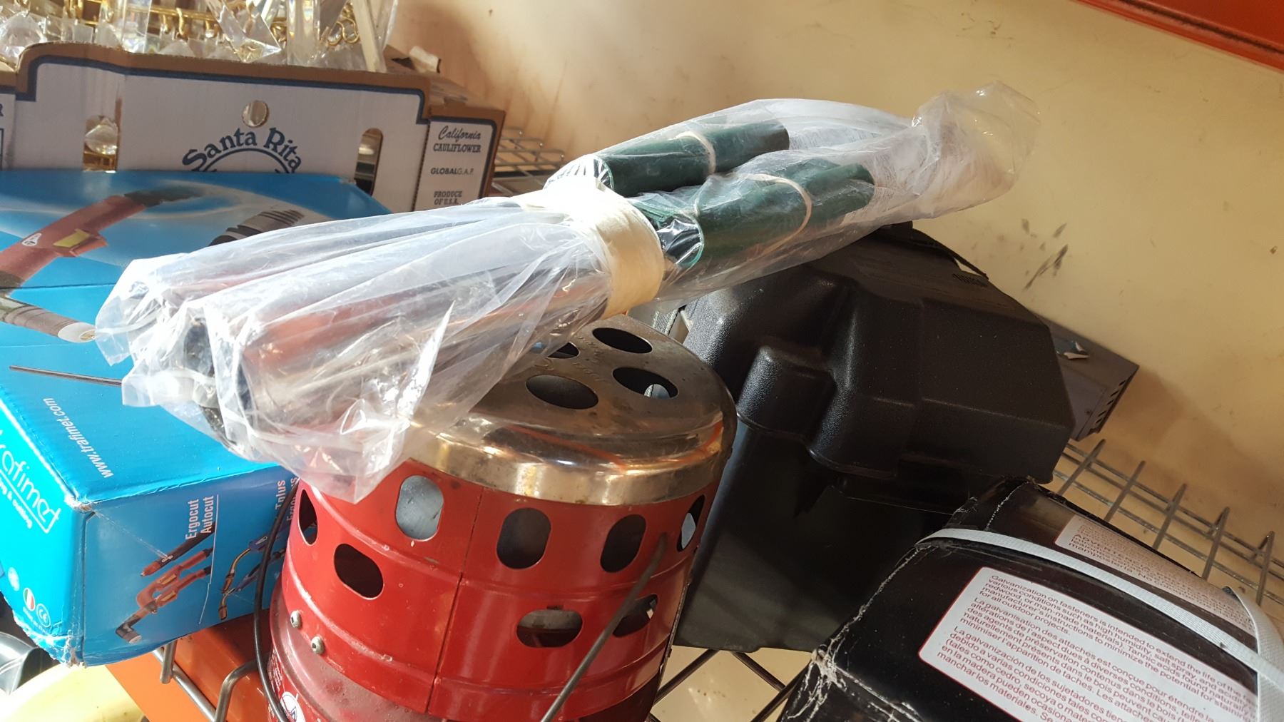 ROLL OF HEAT SHIELD, CAMP STOVE AND BATTERY BOX