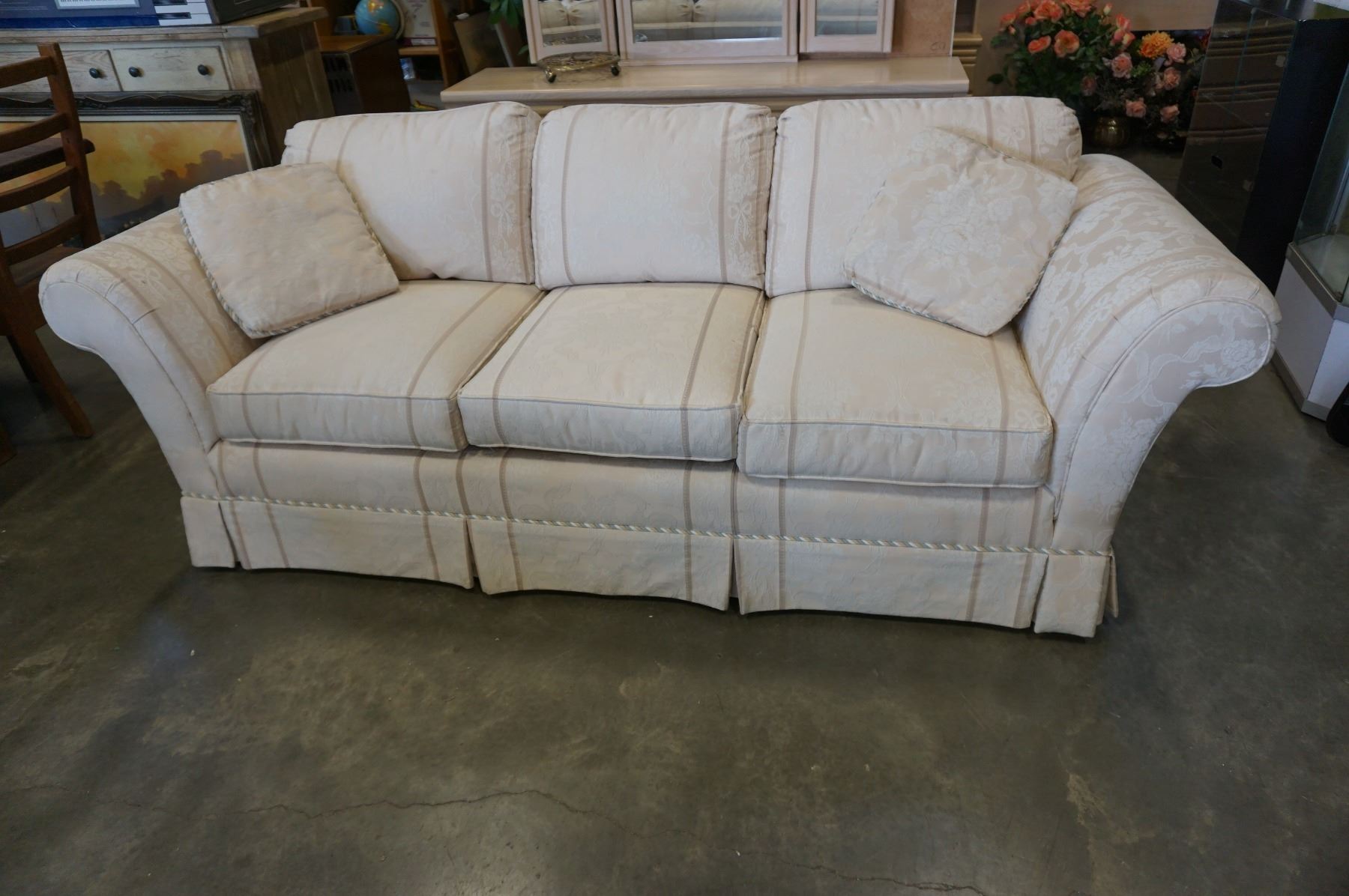 ROLLED ARM WHITE FABRIC SOFA BY CLAYTON MARCUS FURNITURE