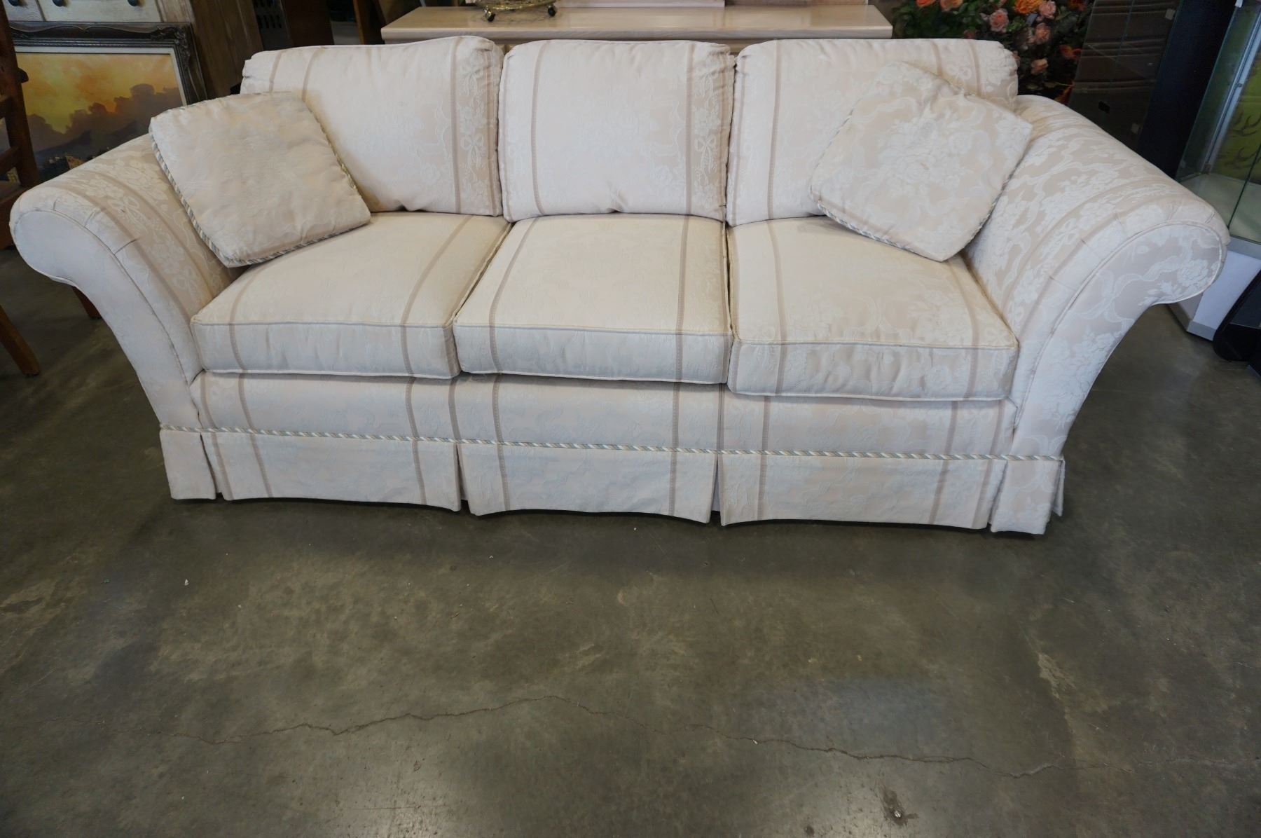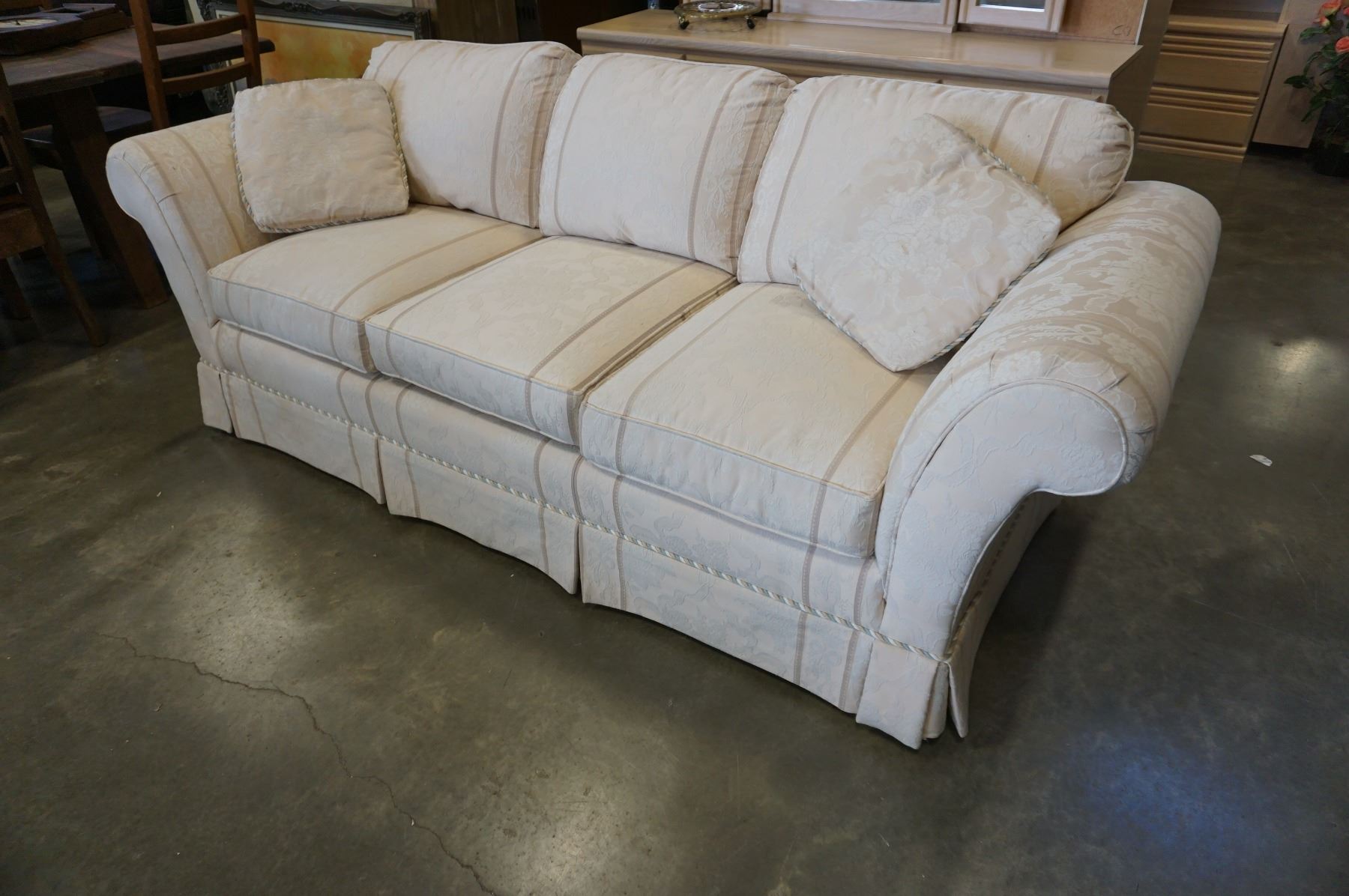 ROLLED ARM WHITE FABRIC SOFA BY CLAYTON MARCUS FURNITURE
