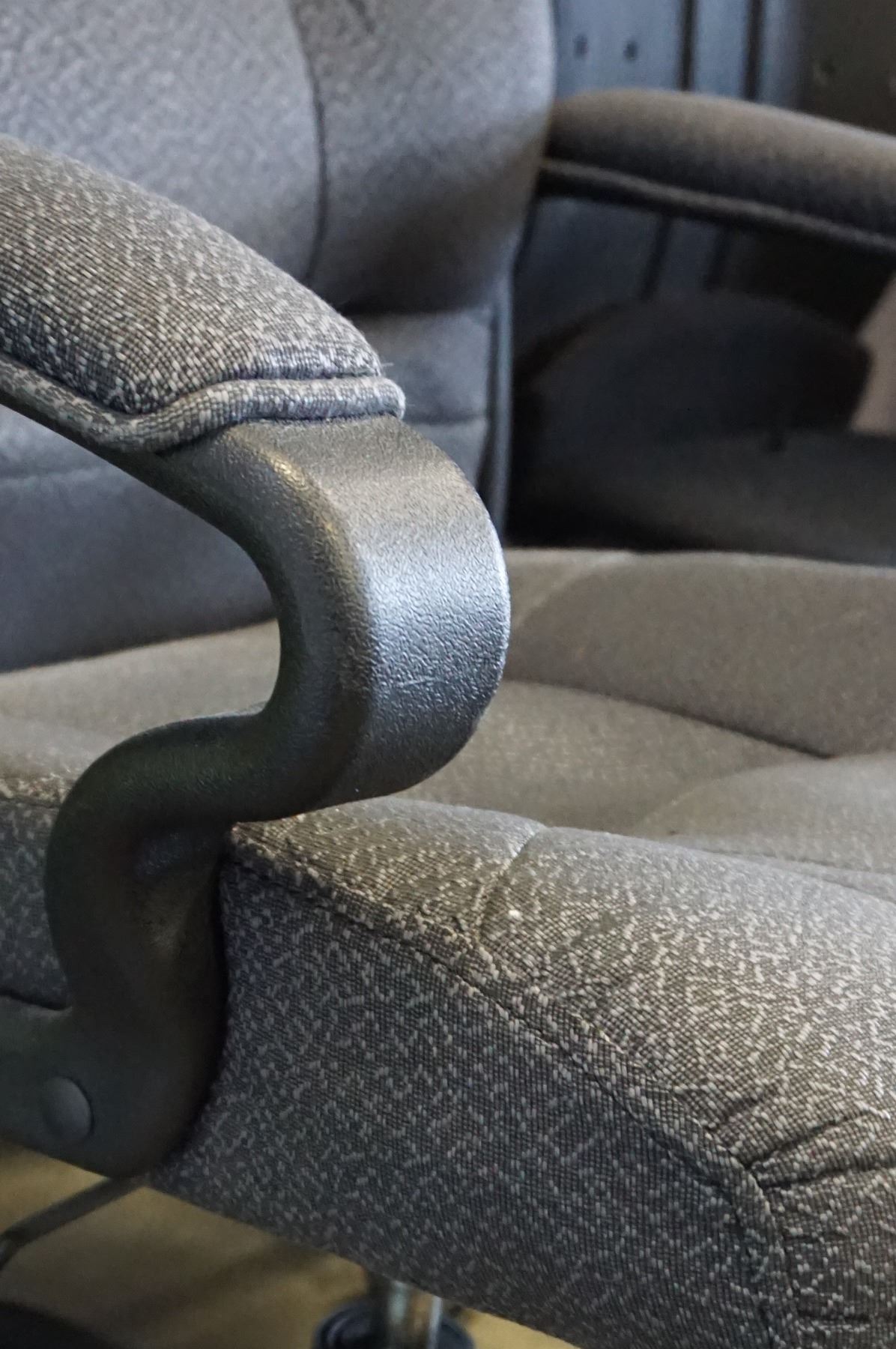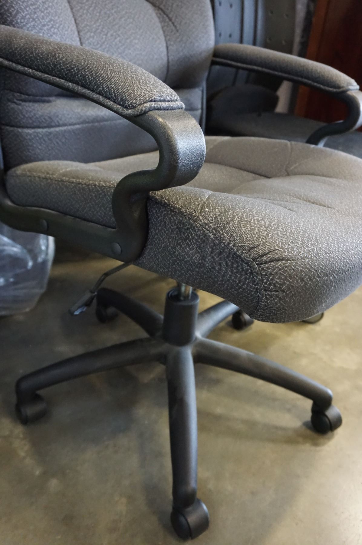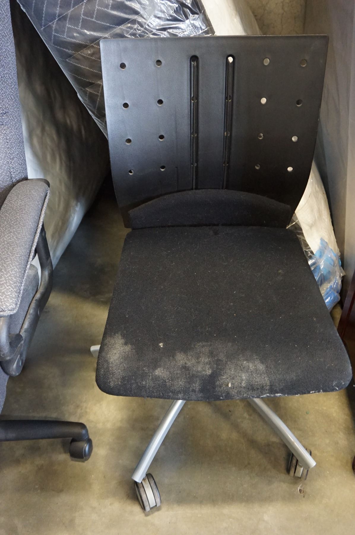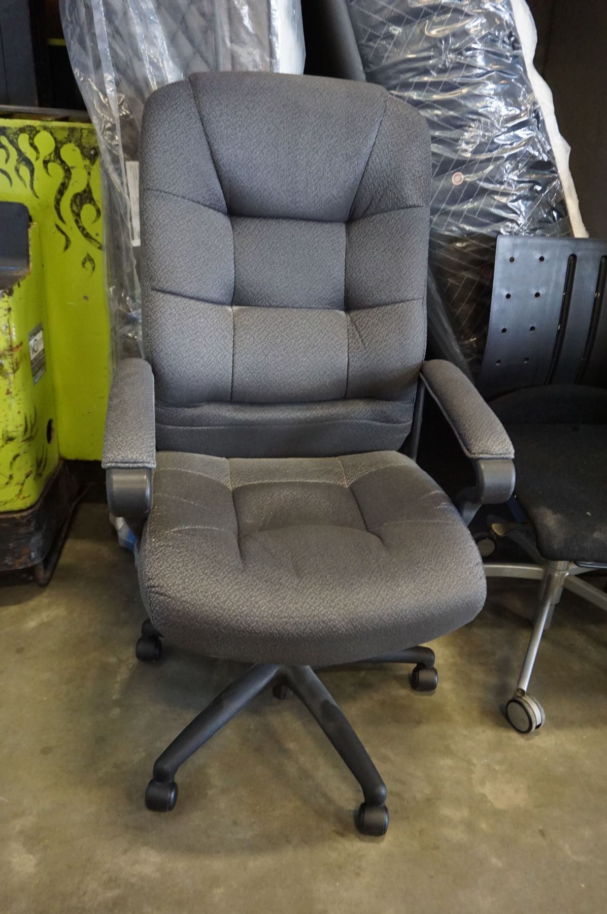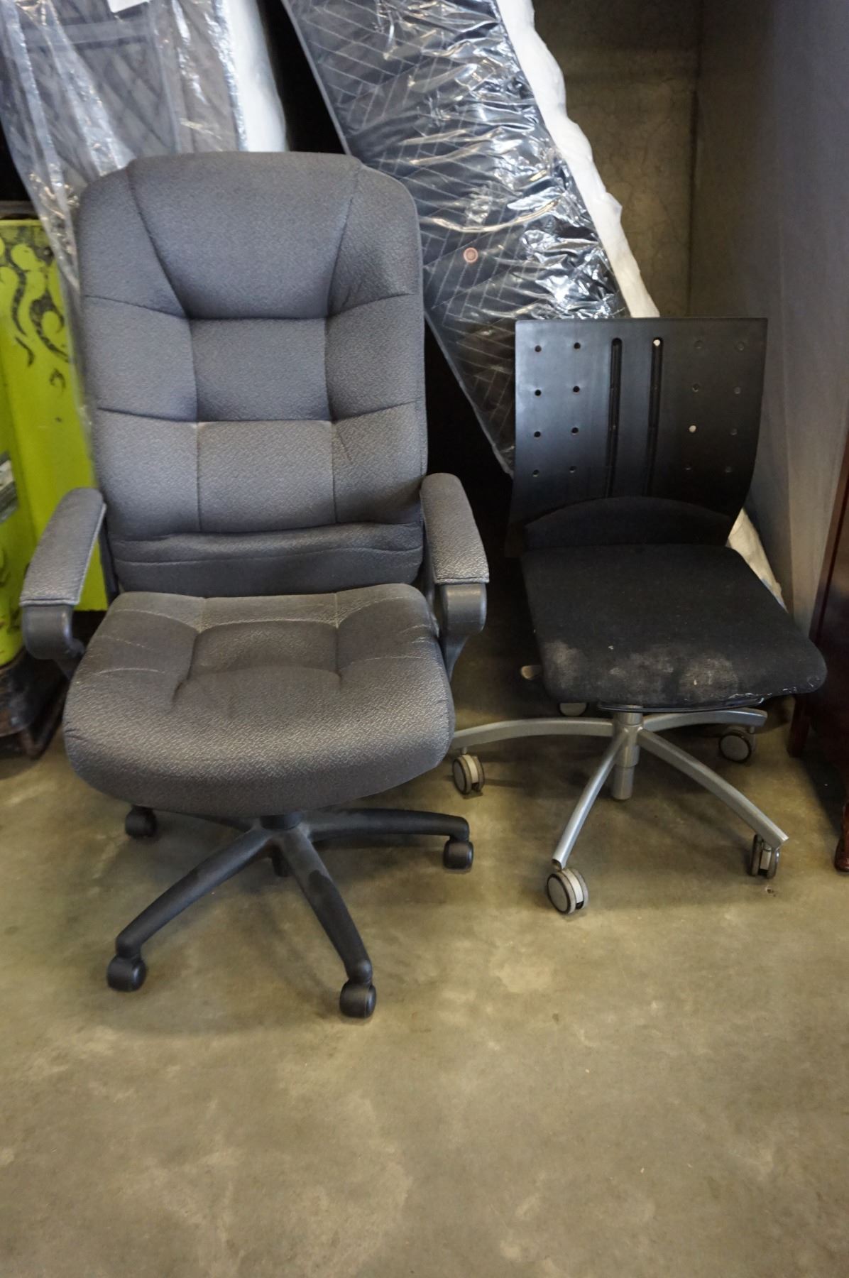 ROLLING HIGHBACK FABRIC OFFICE CHAIR AND BLACK OFFICE CHAIR