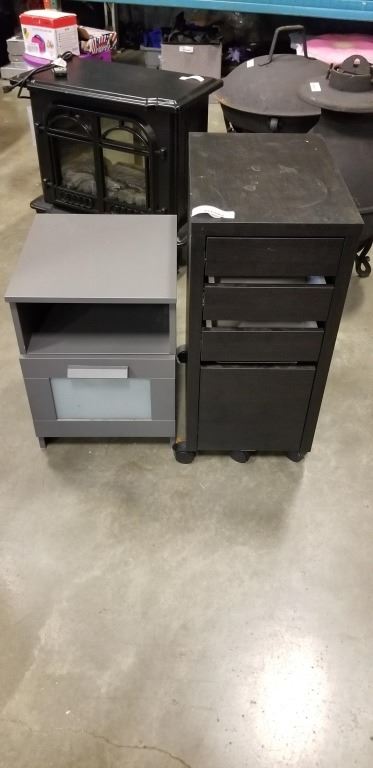 ROLLING IKEA ORGANIZER AND GREY NIGHTSTAND