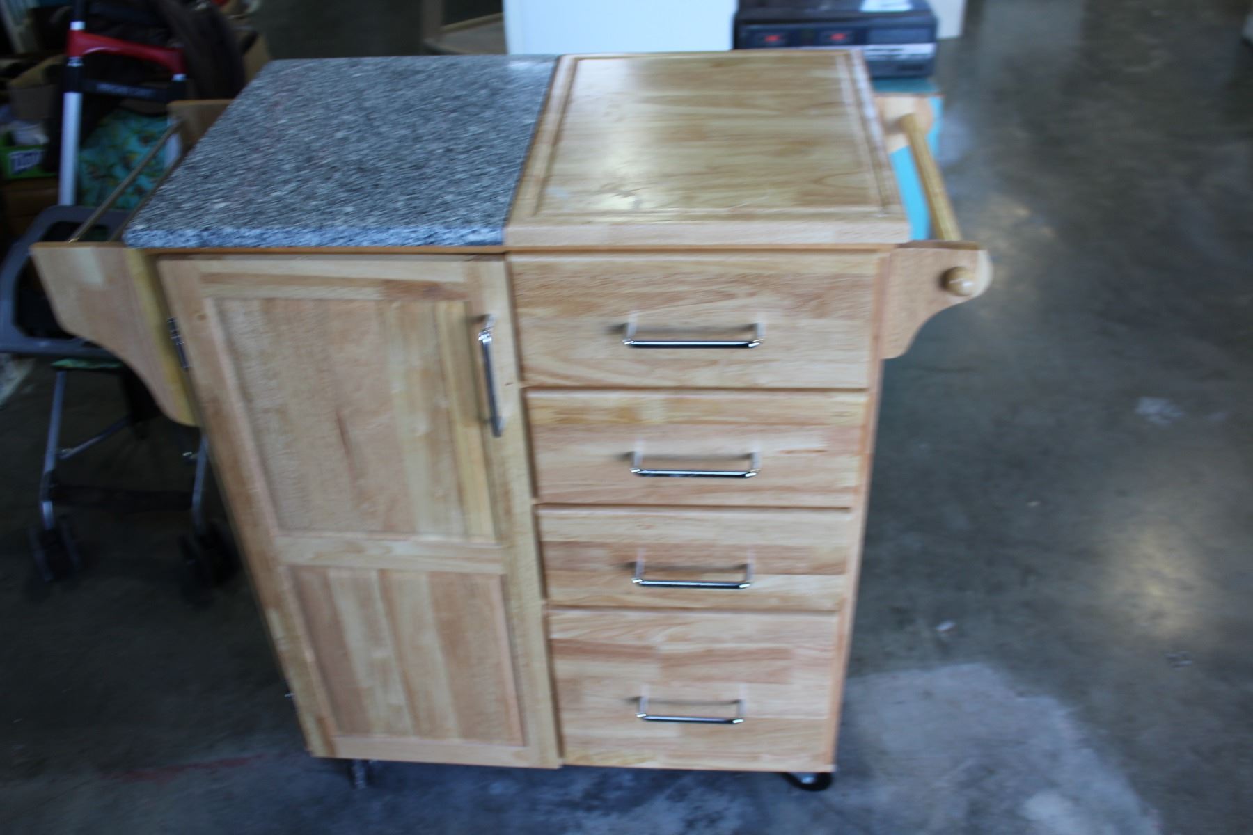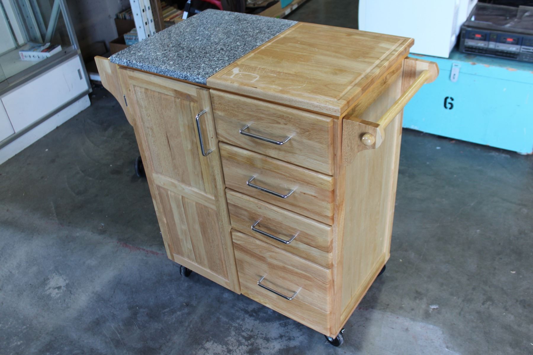 ROLLING MAPLE KITCHEN CART WITH GRANITE TOP