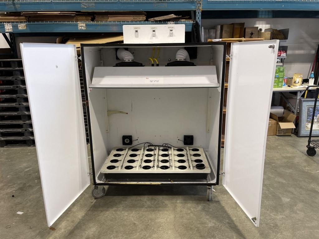 ROLLING METAL GROW CABINET 51 INCH WIDE X 72 INCH OVERALL HEIGHT, WITH LIGHTING, FILTER, DRAINAGE