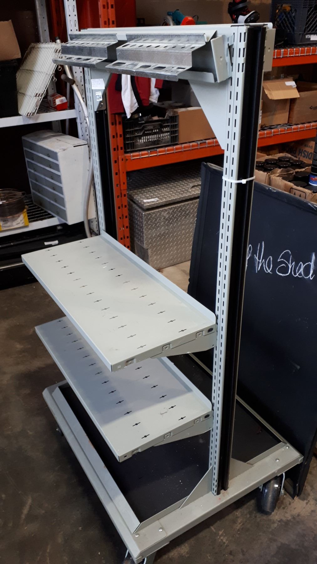 ROLLING METAL SHELF, ADJUSTABLE SHELVES, AND LOCKING CASTORS