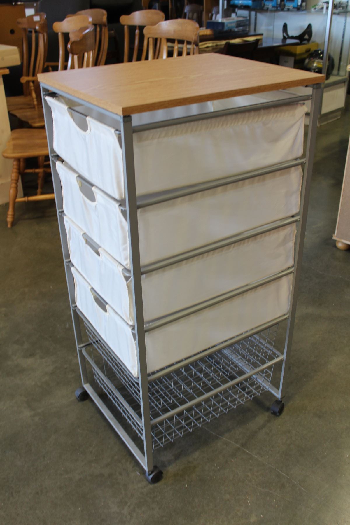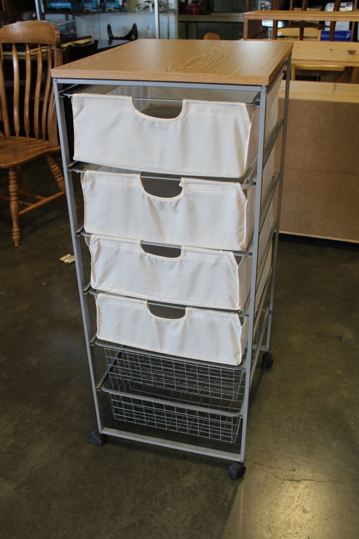ROLLING ORGANIZER WITH FABRIC AND WIRE DRAWERS
