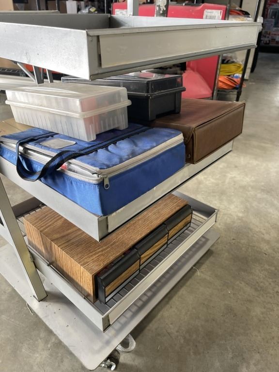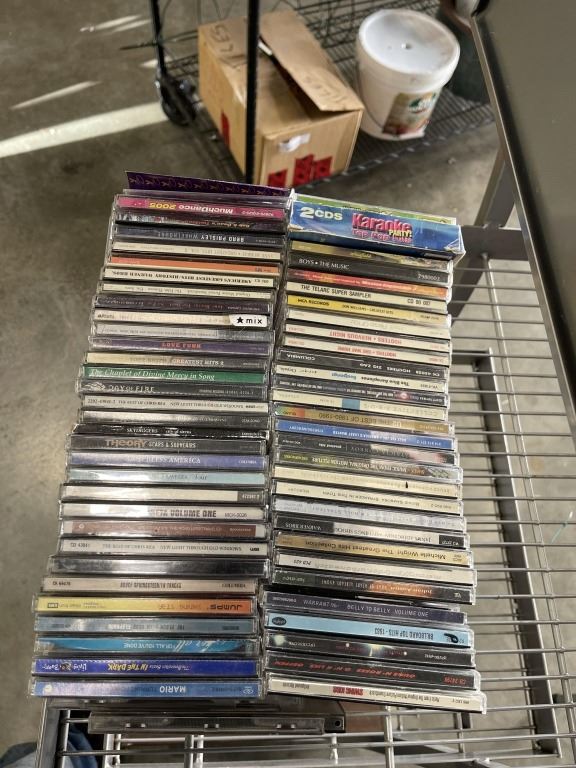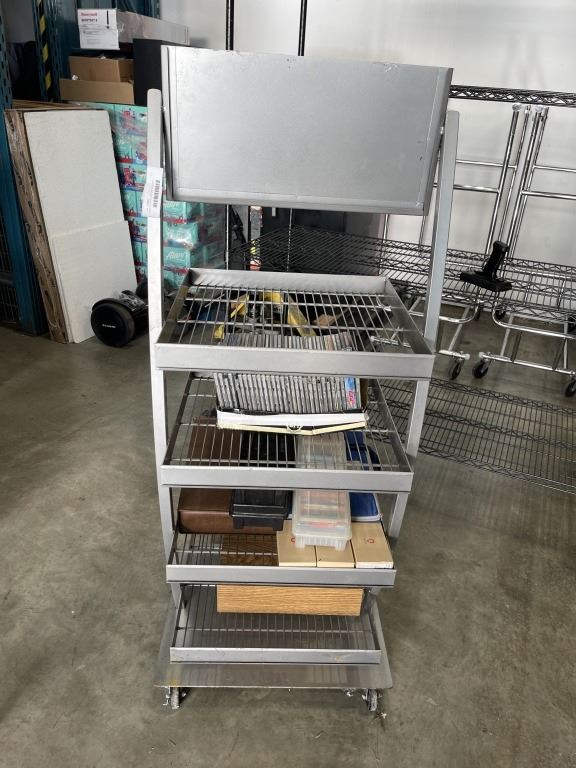 ROLLING RETAIL DISPLAY RACK WITH ASSORTED CD'S AND CASSETTES