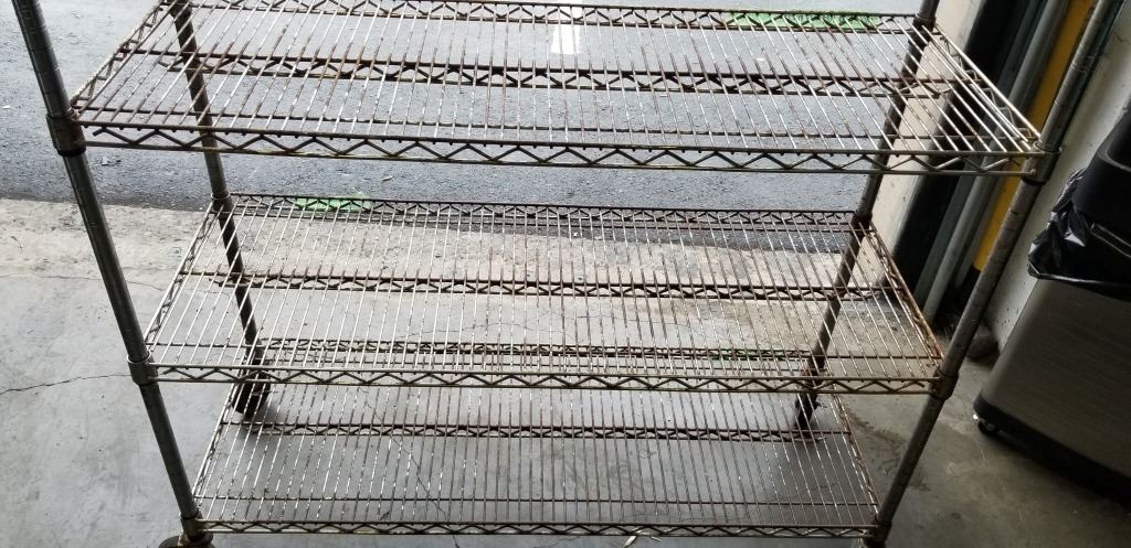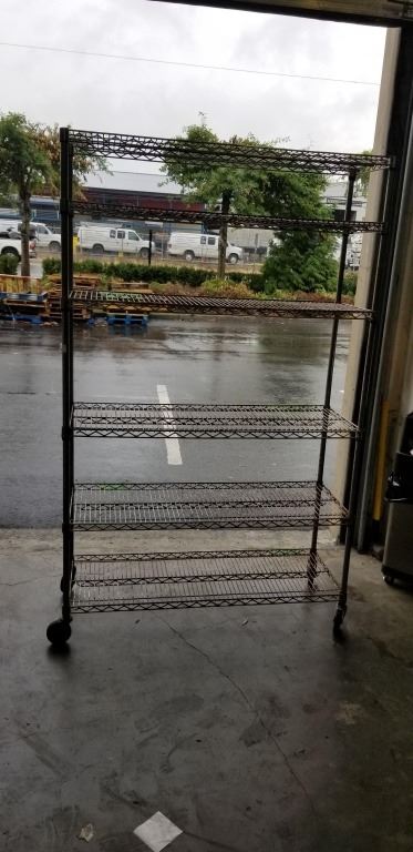 ROLLING WIRE SHELVING UNIT, 48 WIDE, 77 TALL WITH CASTORS, 18 DEEP